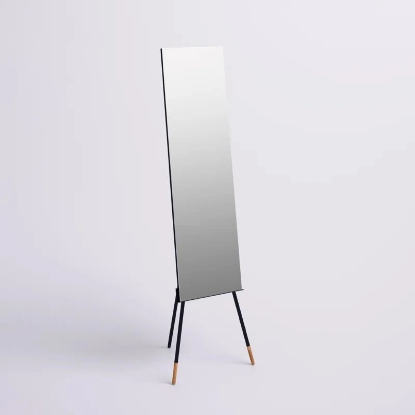 Selling a stylish full-length standing mirror with sleek black frame and tripod base. Minimalist, modern, and perfect for condos or smaller spaces.