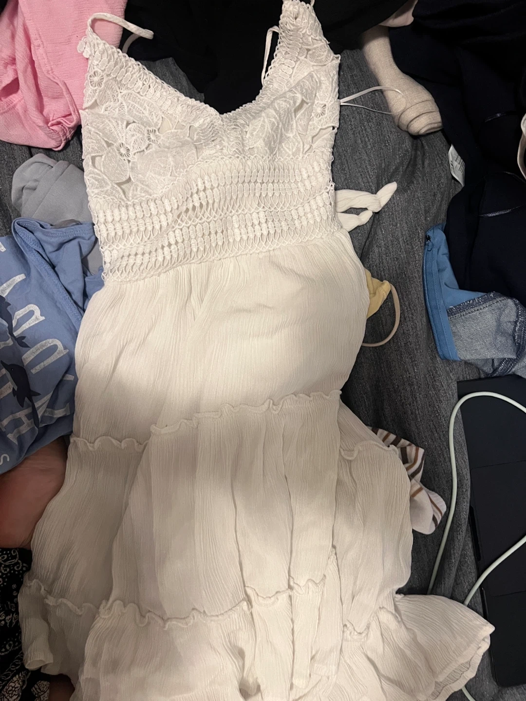 Selling a cute white sundress with a lace bodice and flowy skirt! Perfect for summer days and evenings. It's in great condition and ready for a new home