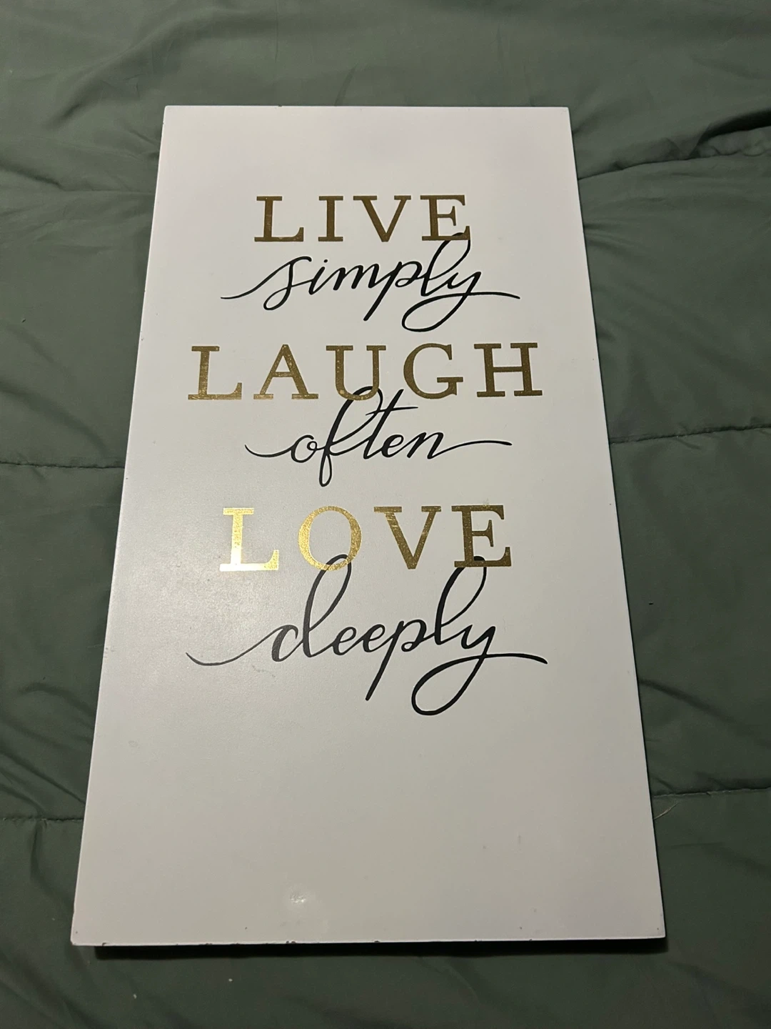 Spruce up your space with this charming wall decor! Features the words 'Live simply, Laugh often, Love deeply' in an elegant font. Perfect for adding a touch of warmth to any room in your home