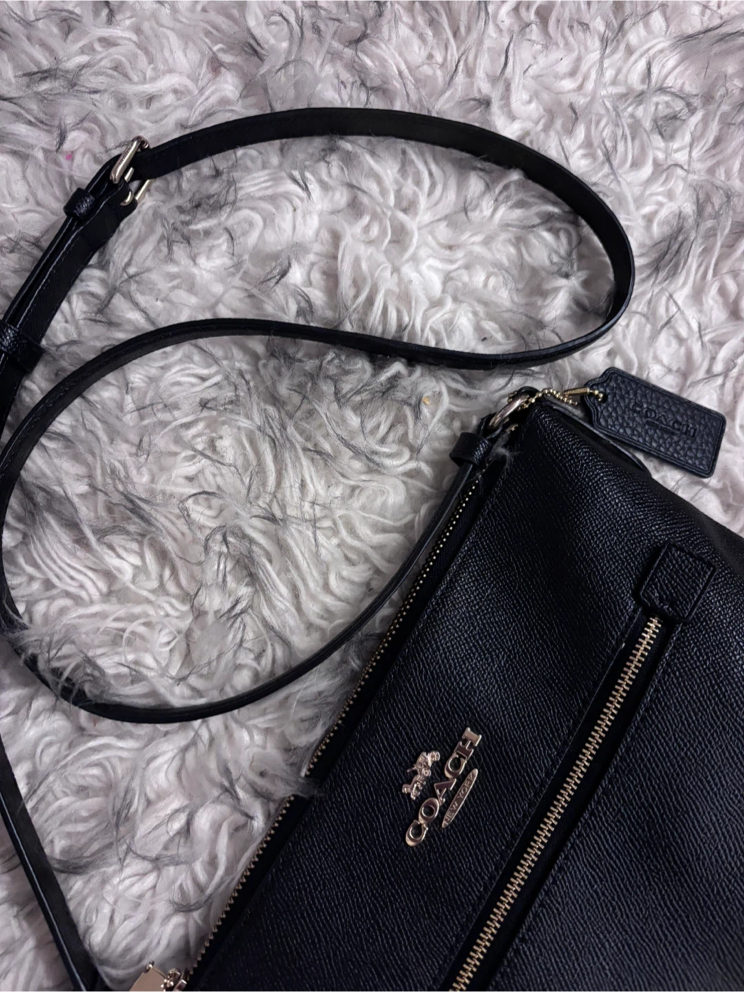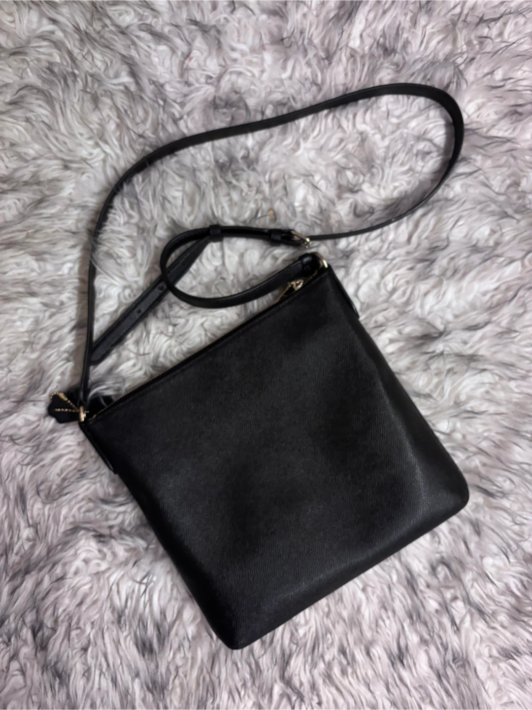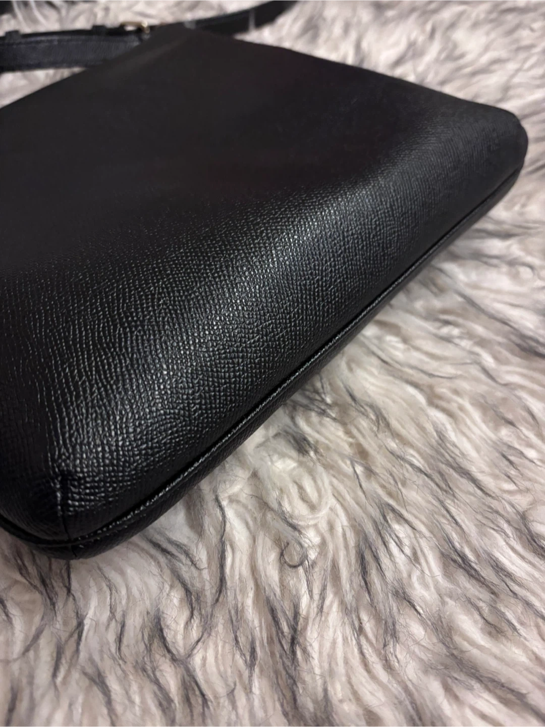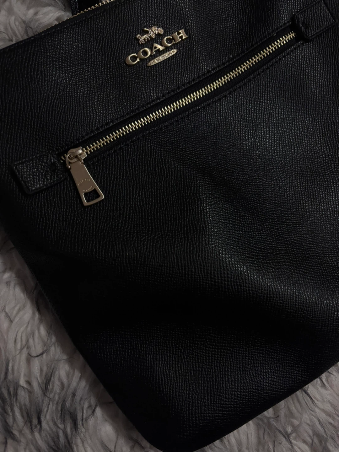 Crossgrain leather. Inside multifunction pocket. Zip-top closure, fabric lining. Outside zip pocket. Adjustable strap with 21 3/4" drop for shoulder or crossbody wear.