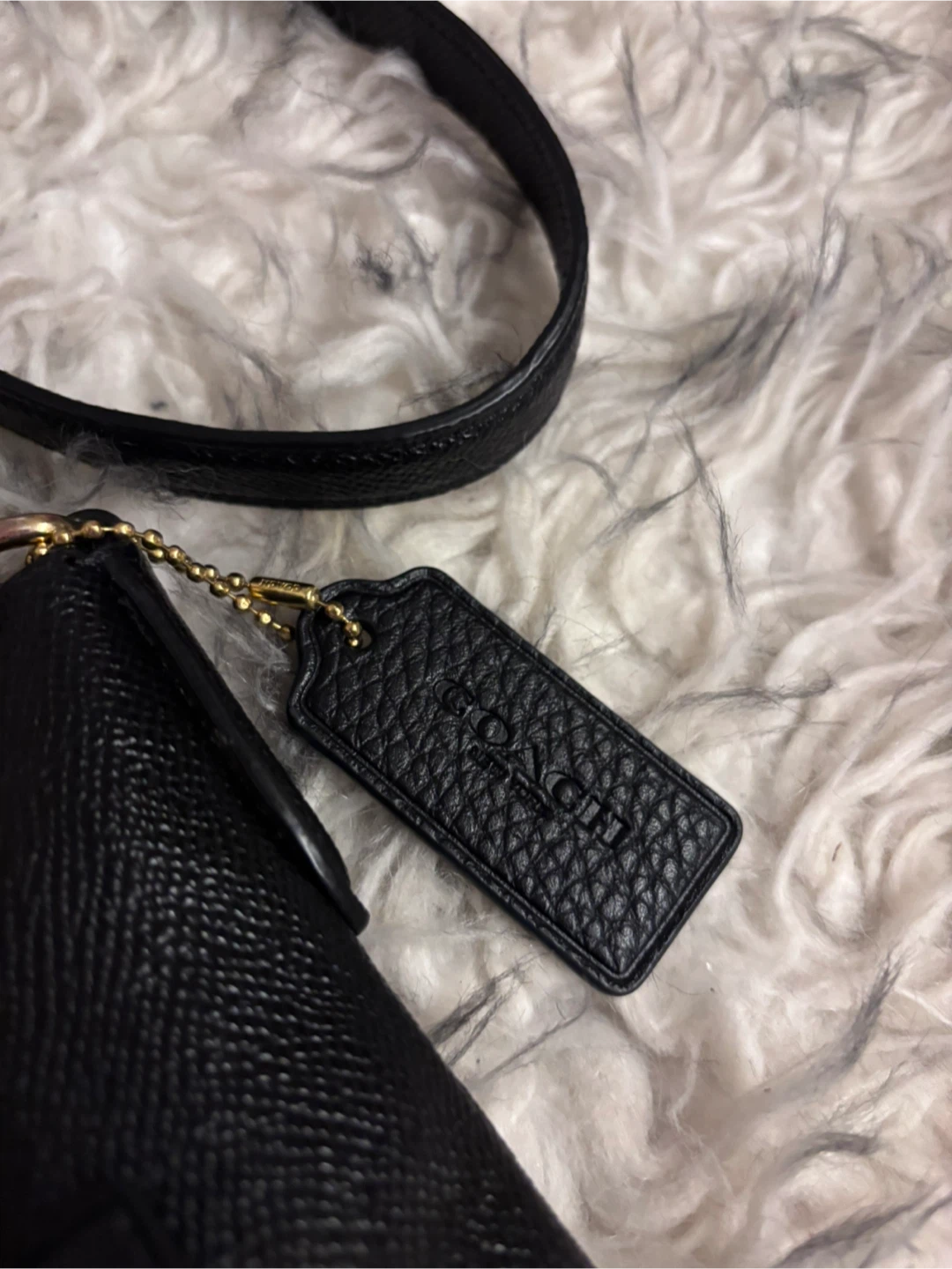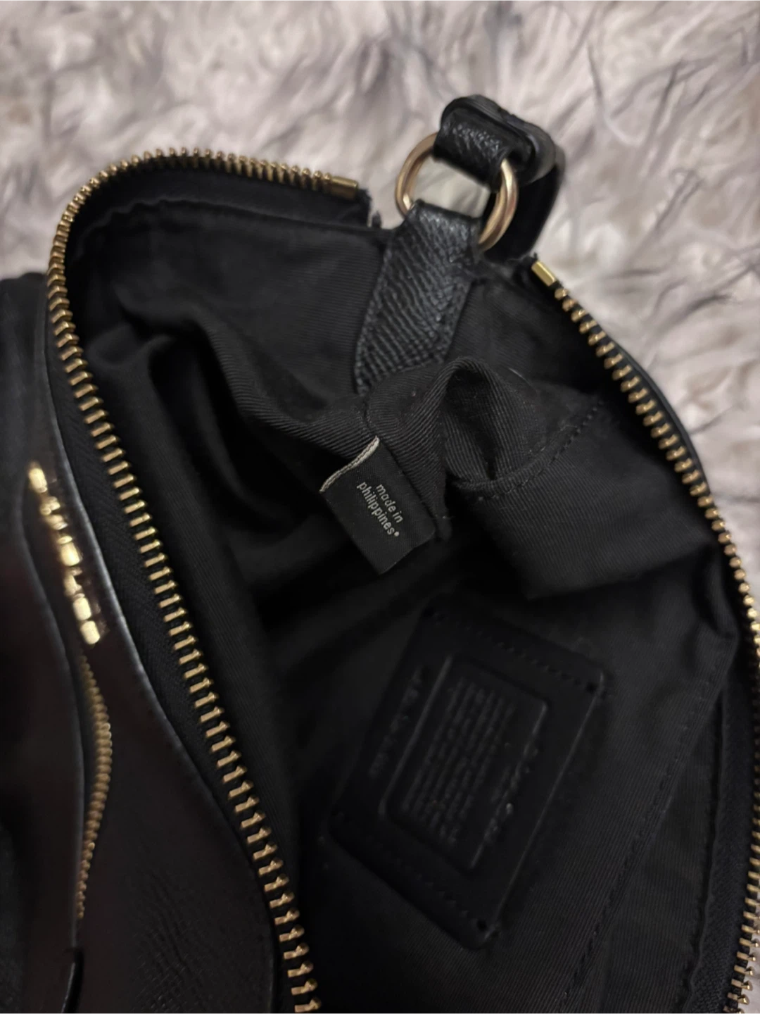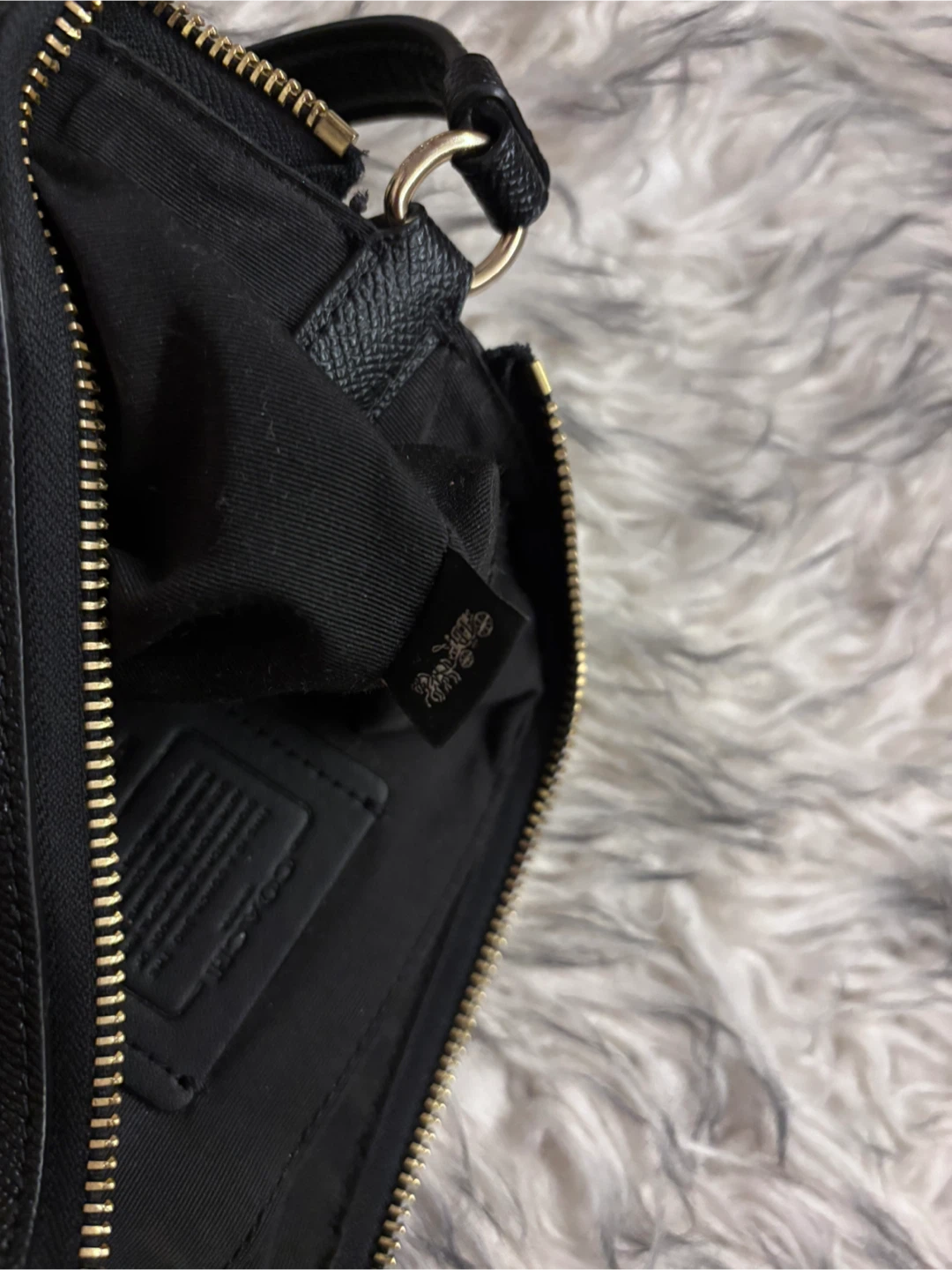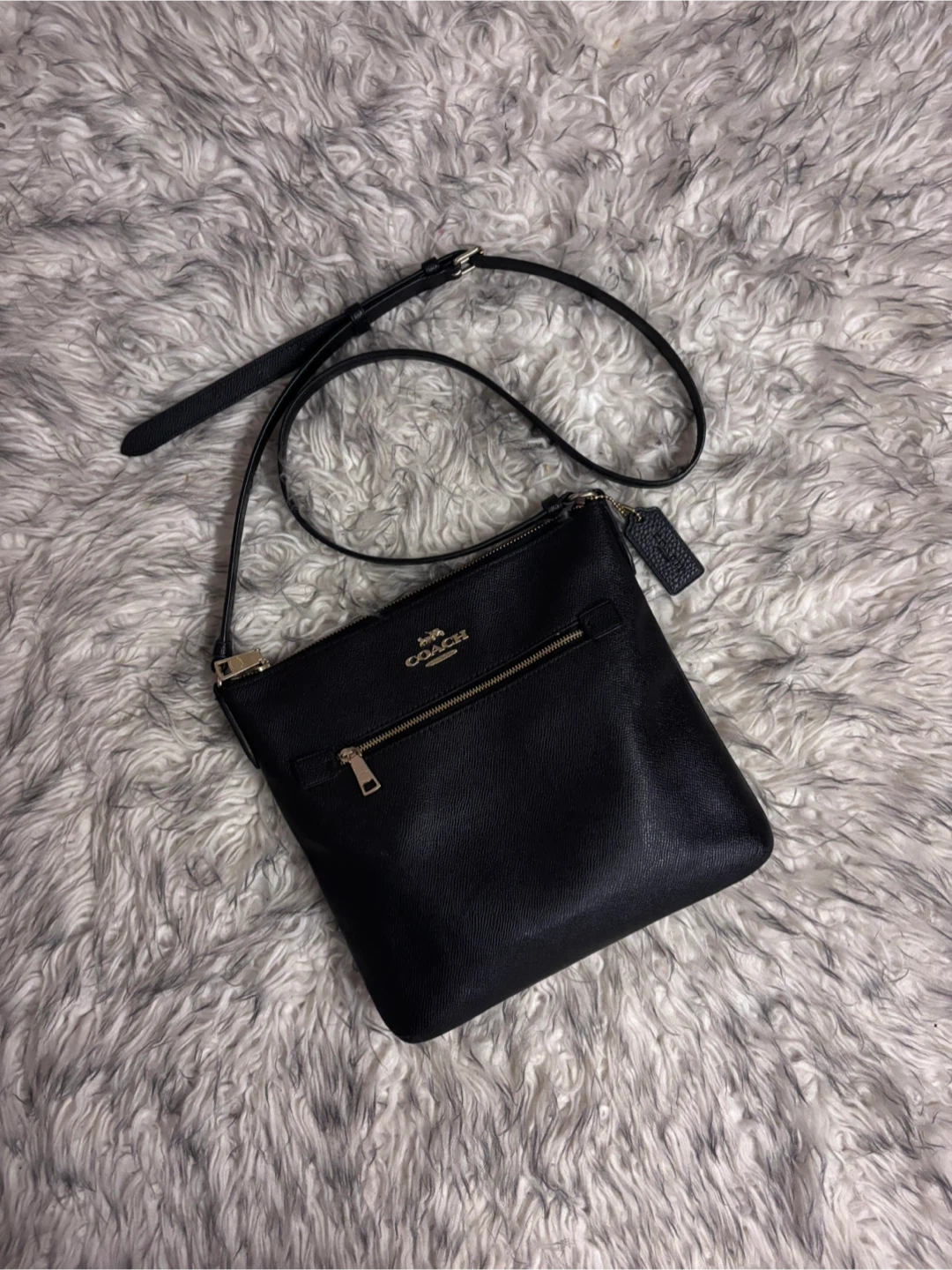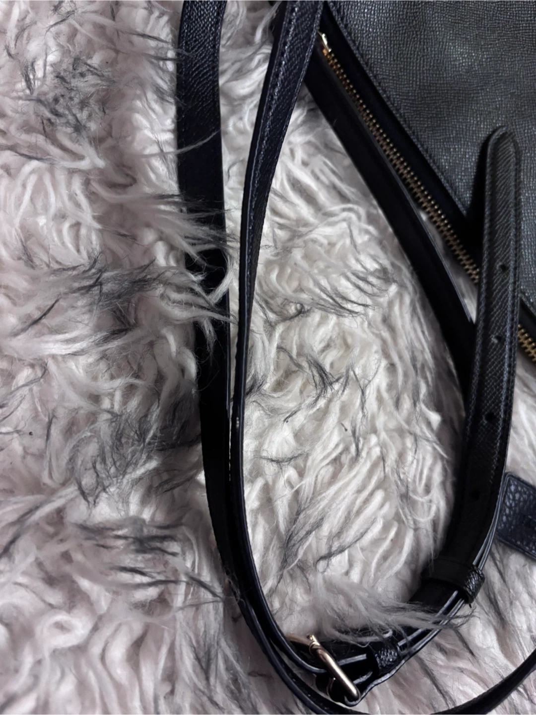 Crossgrain leather. Inside multifunction pocket. Zip-top closure, fabric lining. Outside zip pocket. Adjustable strap with 21 3/4" drop for shoulder or crossbody wear.