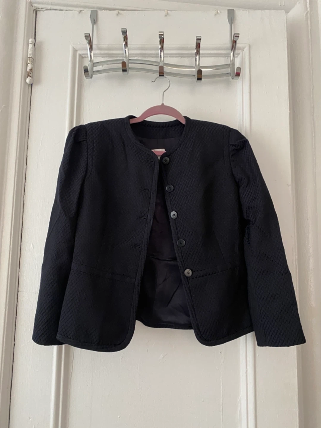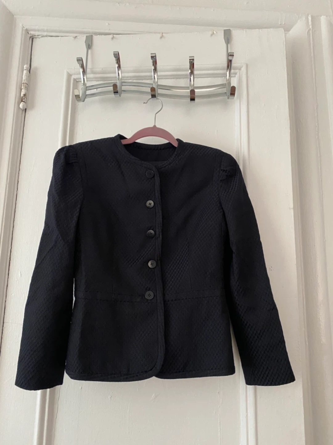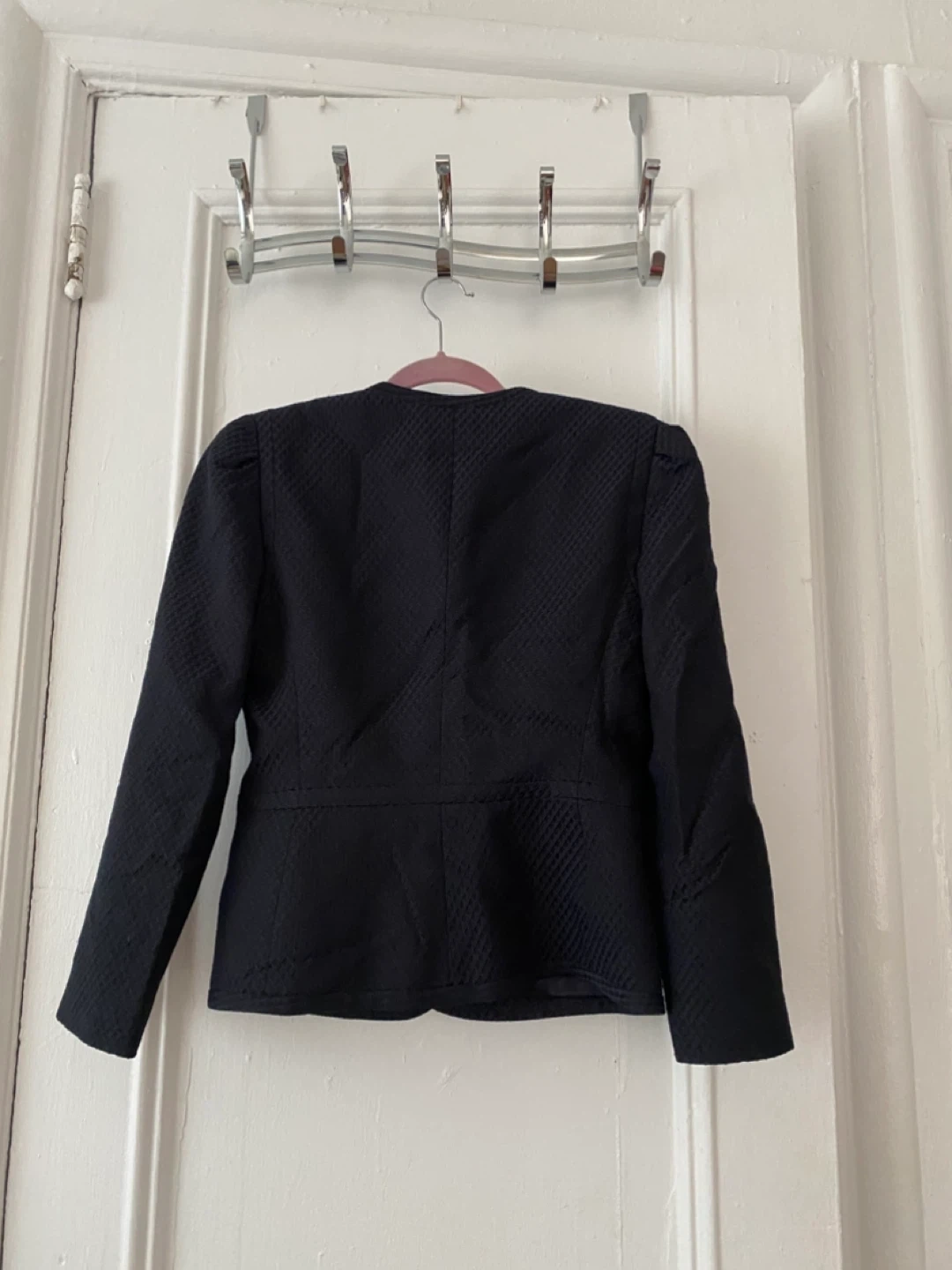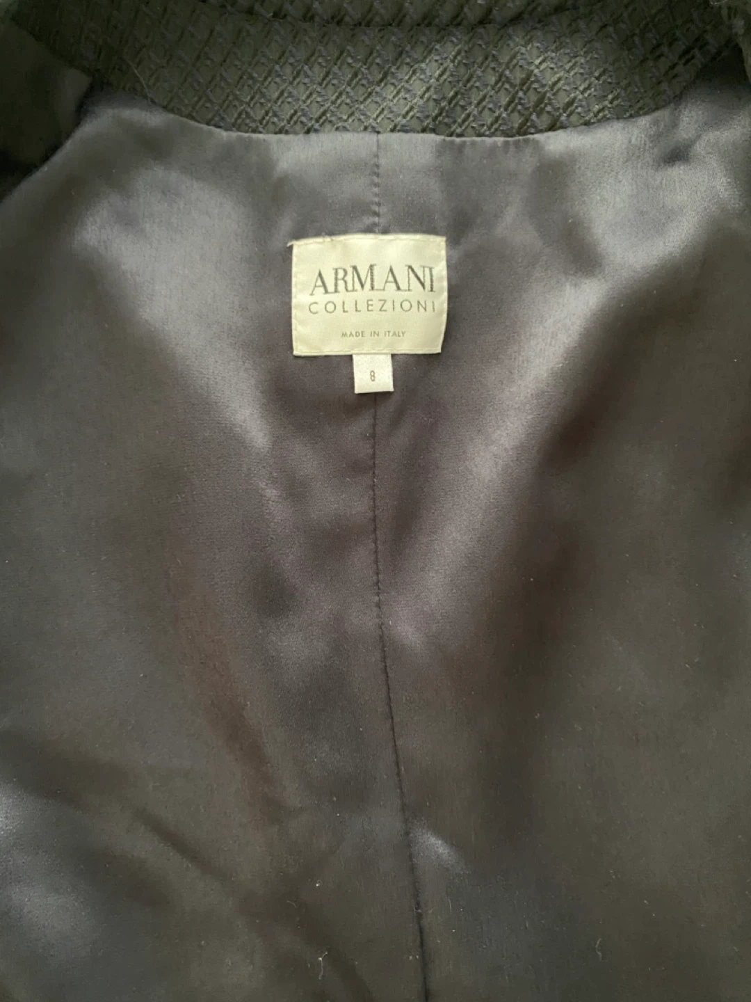 Selling an Armani Collezioni black blazer/jacket with shoulder pads, in size 8. It's in great condition