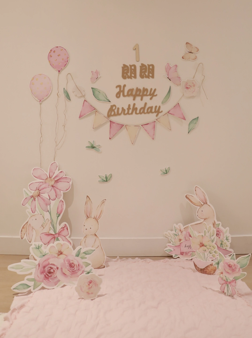 babygirl birthday party bunny background KT board set