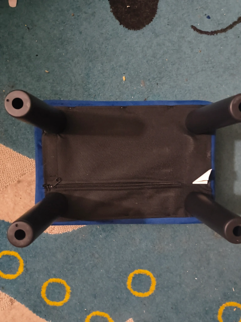 Selling a cute blue ottoman foot stool. It's in good condition and would be a great addition to any living room or bedroom. The ottoman features a soft, cushioned top and sturdy legs.