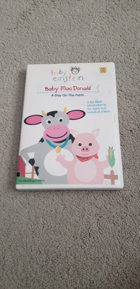 Selling a Baby Einstein DVD titled 'Baby MacDonald: A Day On The Farm'! It's a fun introduction to sights and sounds of a farm. It includes special features such as repeat play, discovery cards, puppet shows, and 'Sing Along' with Baby MacDonald.
