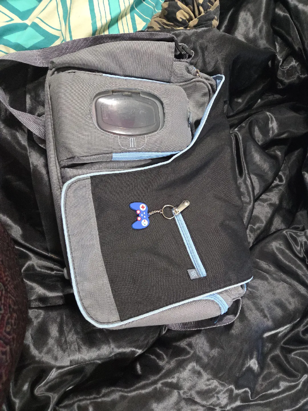 Selling a diaper bag in great condition! It's grey and black with light blue accents. Has lots of compartments for organizing all your baby essentials