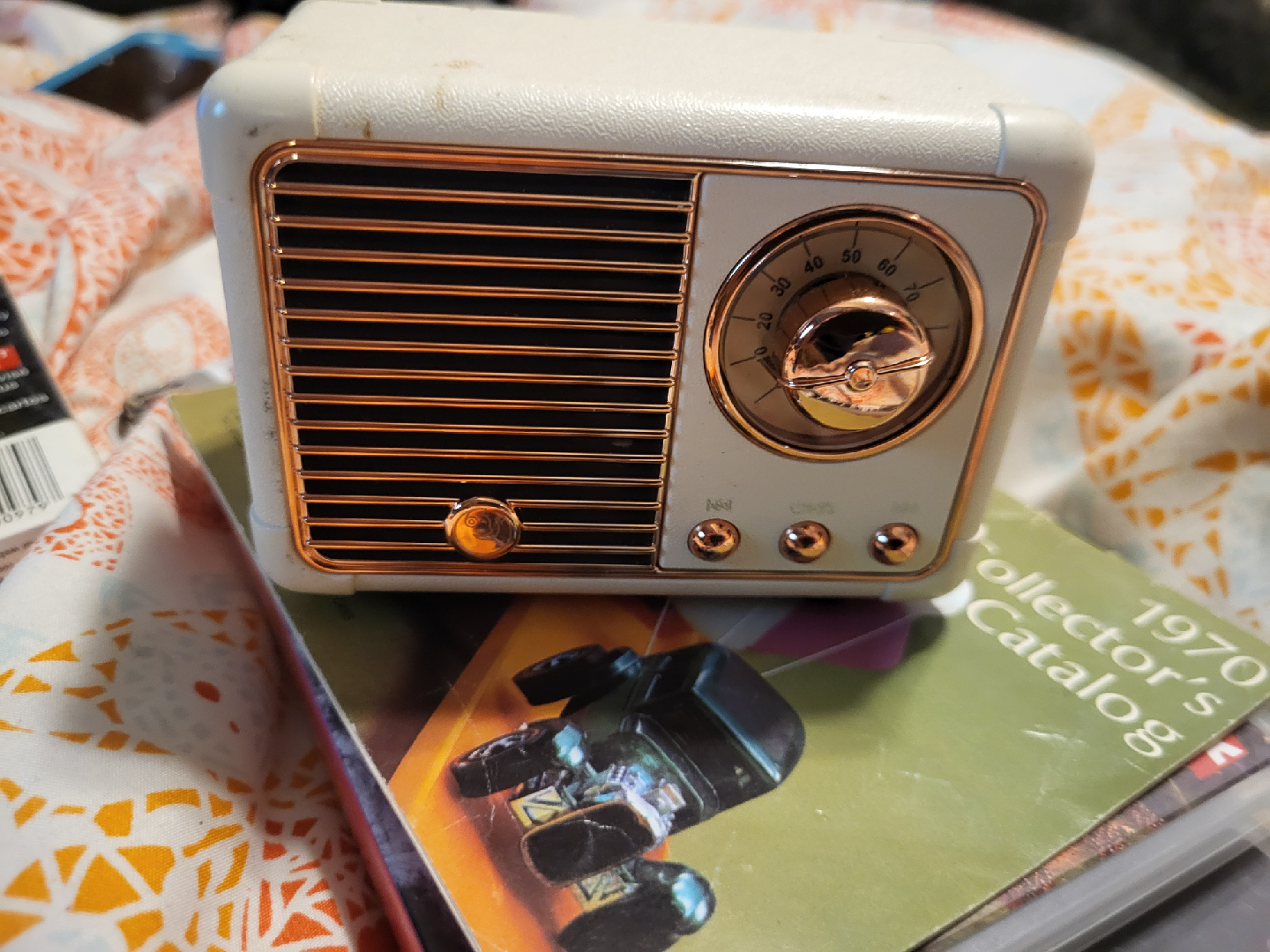 Selling a retro-style Bluetooth speaker, model HM11. It has a 40mm speaker and a lithium 3.7V battery with a capacity of 400mAh. The charger is 5V 1amp with an output of 3W. It has a retro look with gold accents.