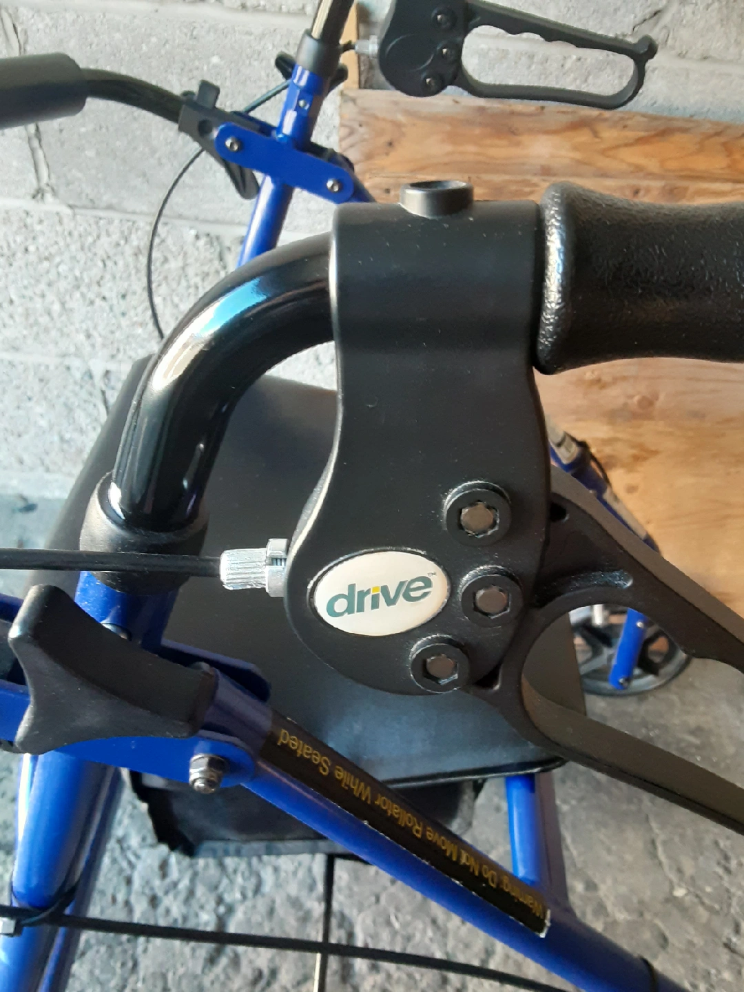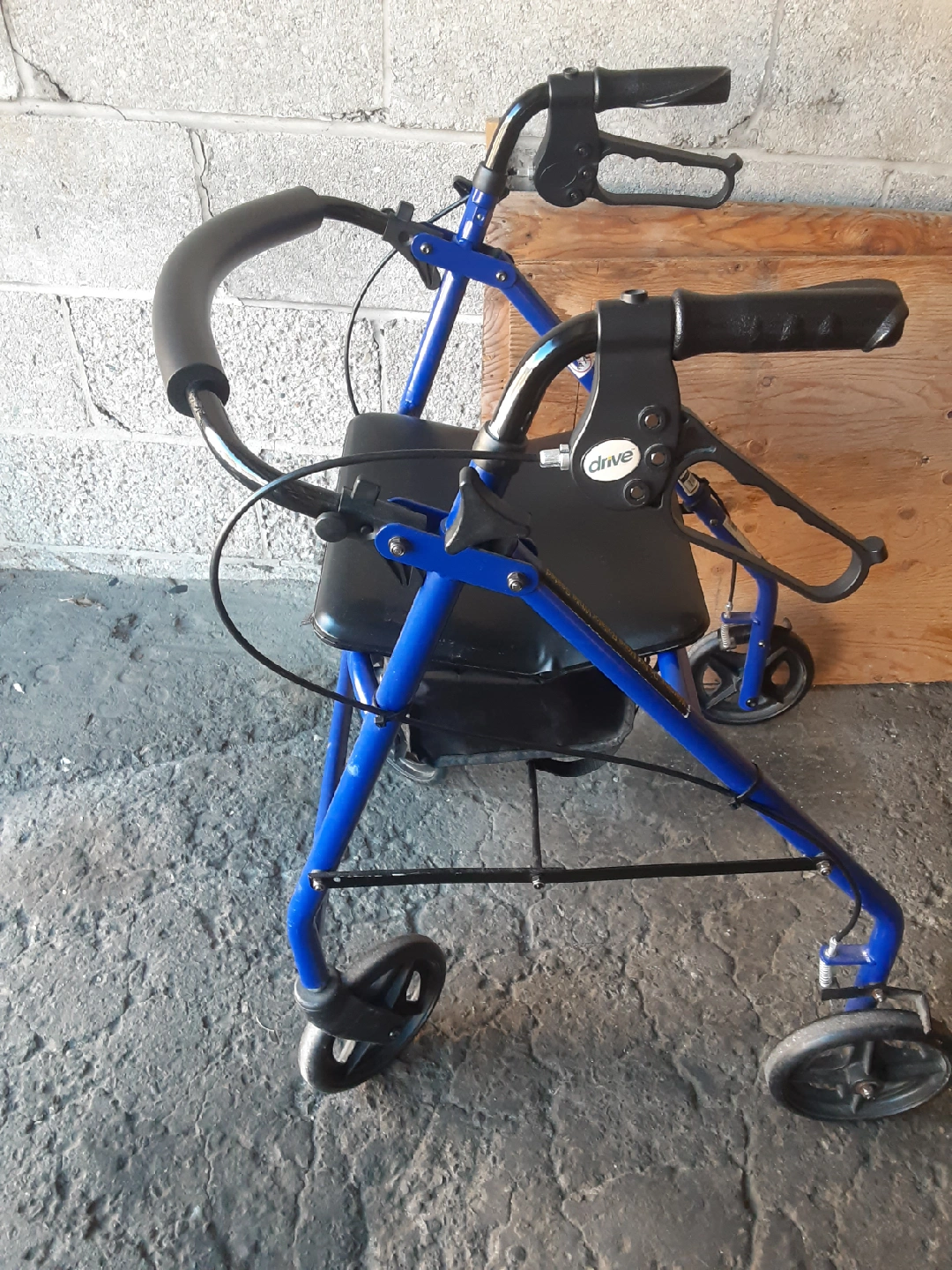Drive Medical walker! It's blue and has a seat, so it's great for taking breaks while you're out and about. It's in good condition and ready for a new home. someone in need.