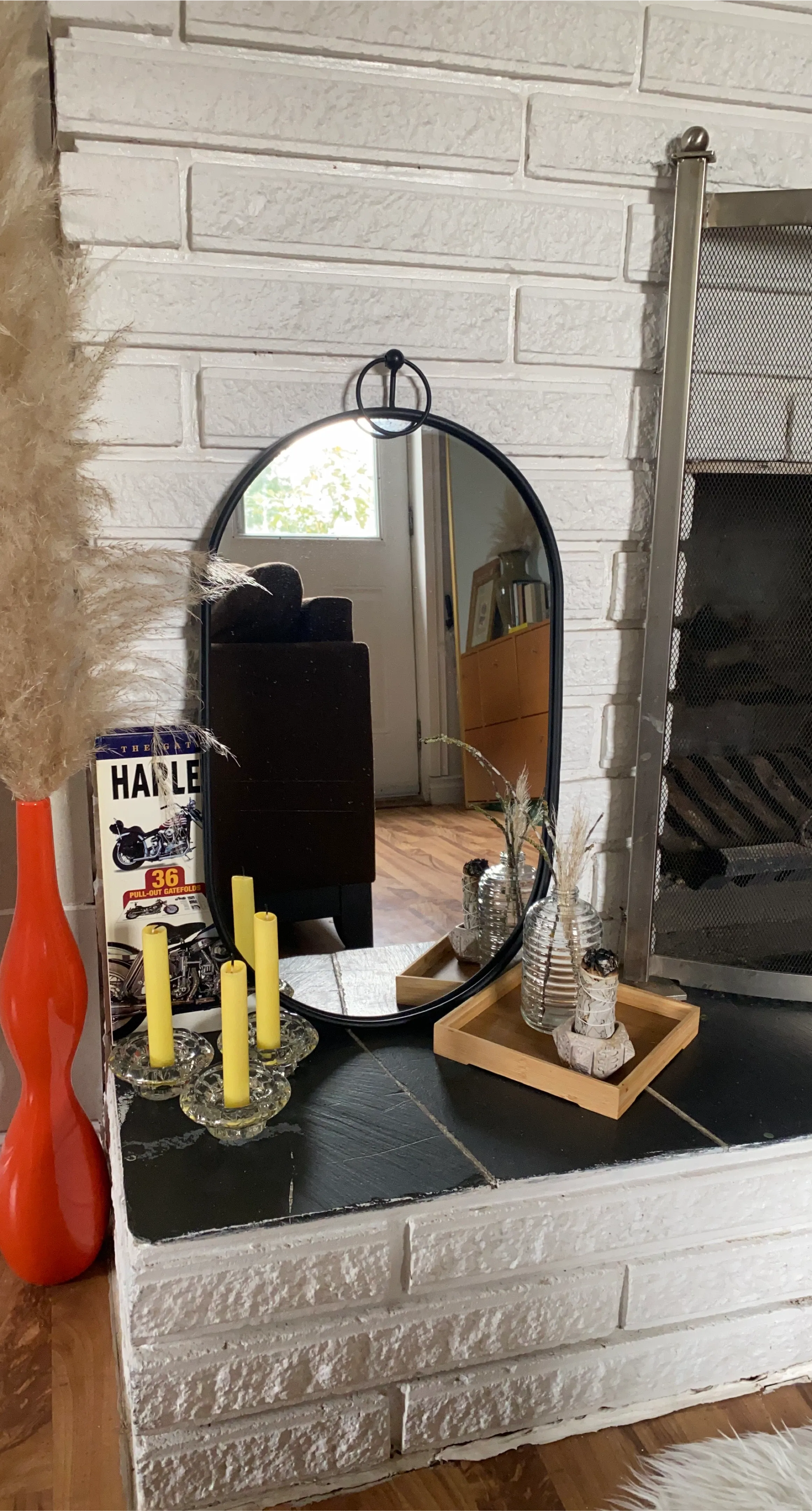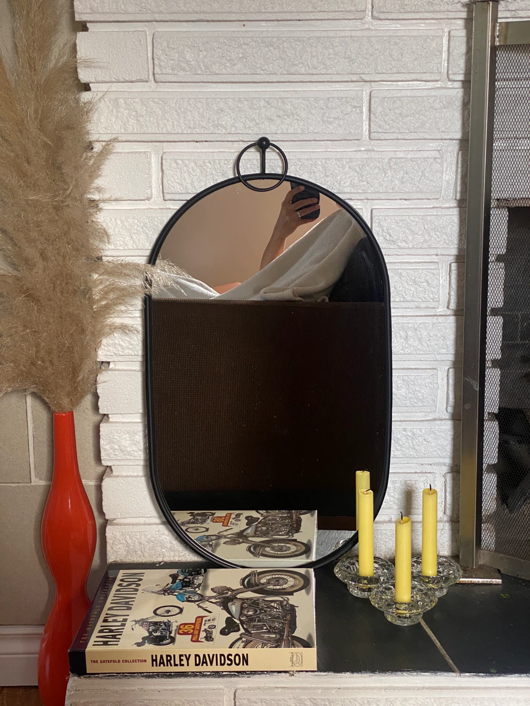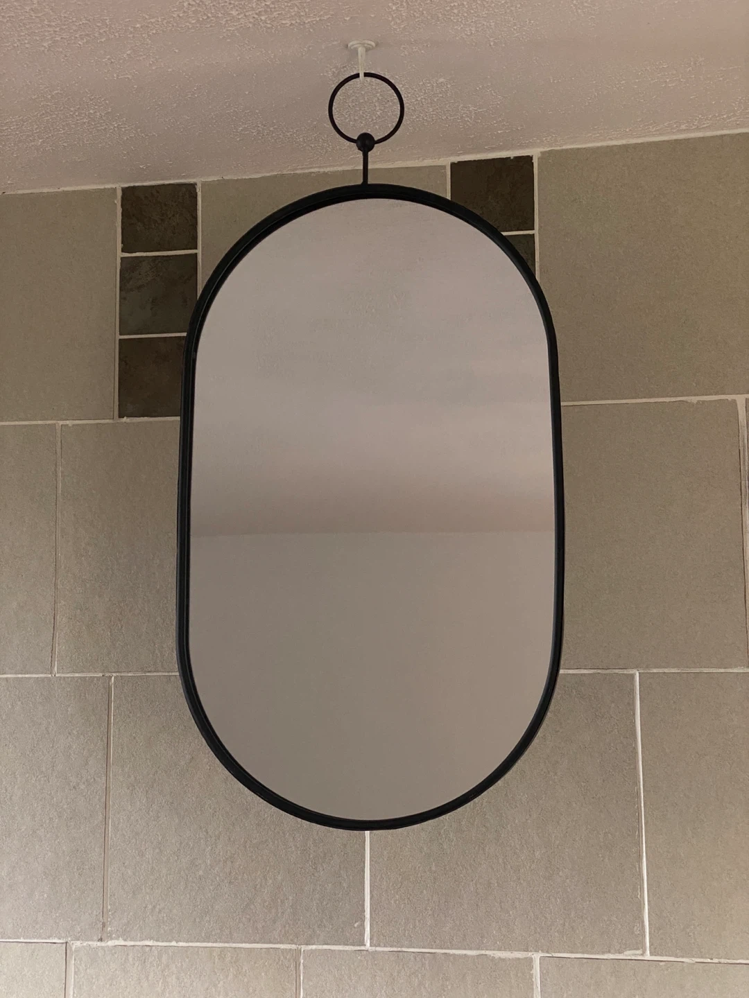 Selling a lovely hanging oval mirror with a sleek black frame! It's in great condition and would look fantastic in any room. The mirror is easy to hang and adds a touch of elegance to your space