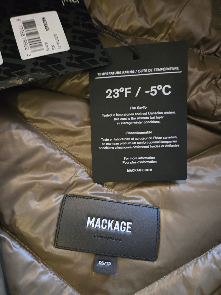 Selling a Mackage Arita-O down coat in size XS and an army green colour! It's in great condition and ready to keep you warm this winter. The coat is tested for Canadian winters, so you know it's durable and warm!