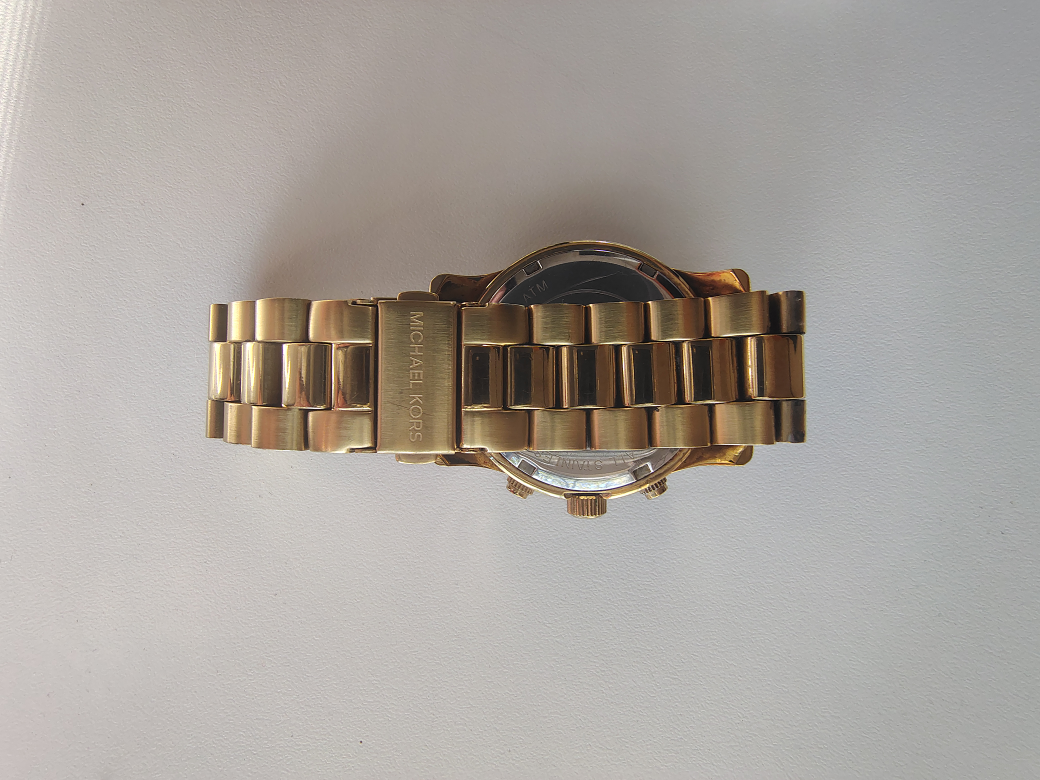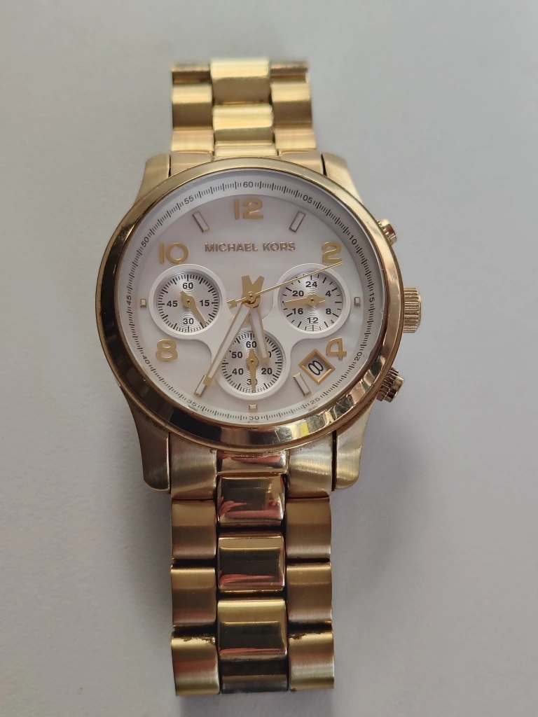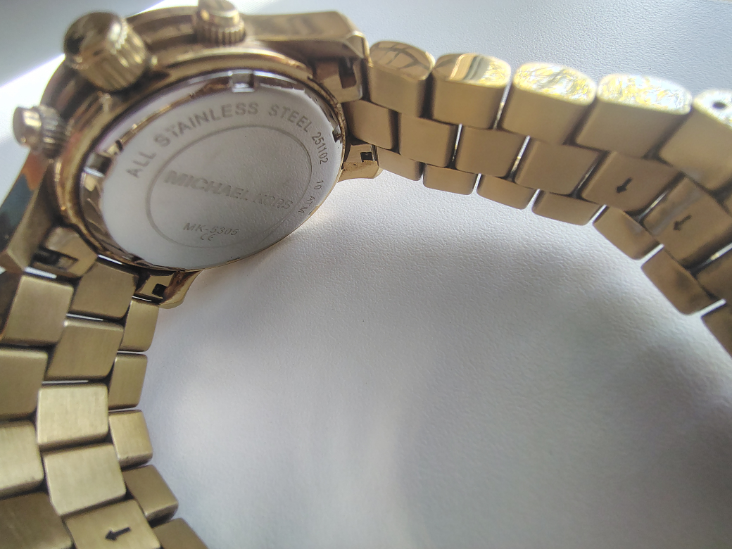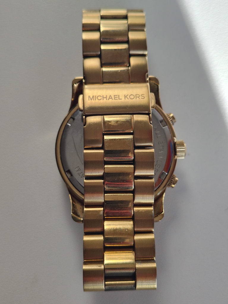 Iconic Michael Kors metals give you that timeless runway look you desire. This stunning piece features a luminous gold-tone finish and a gorgeous mother-of-pearl face that catches the light beautifully. I am the original owner of this watch.