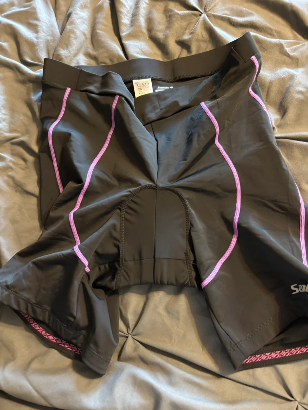 Selling a pair of Santic cycling shorts in great condition! They are black with purple accents and size 3XL (USA). Made of 80% polyamide and 20% elastane, perfect for a comfortable