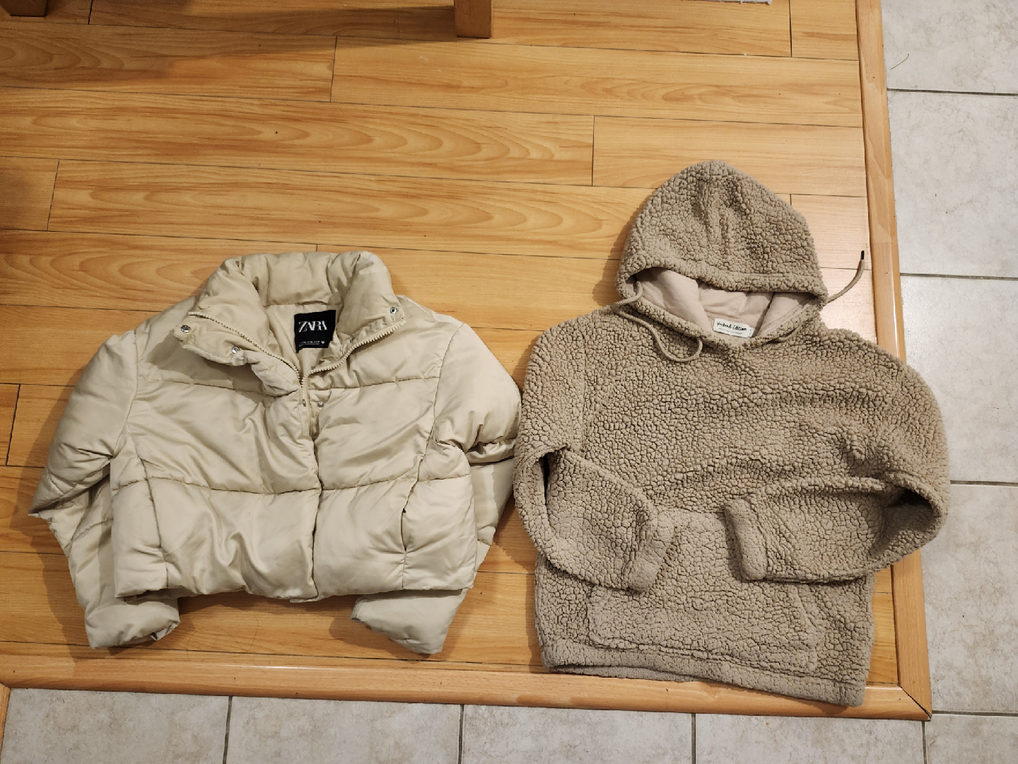 Selling a Zara puffer jacket and a Weekend Edition hoodie. Both are size XS-S