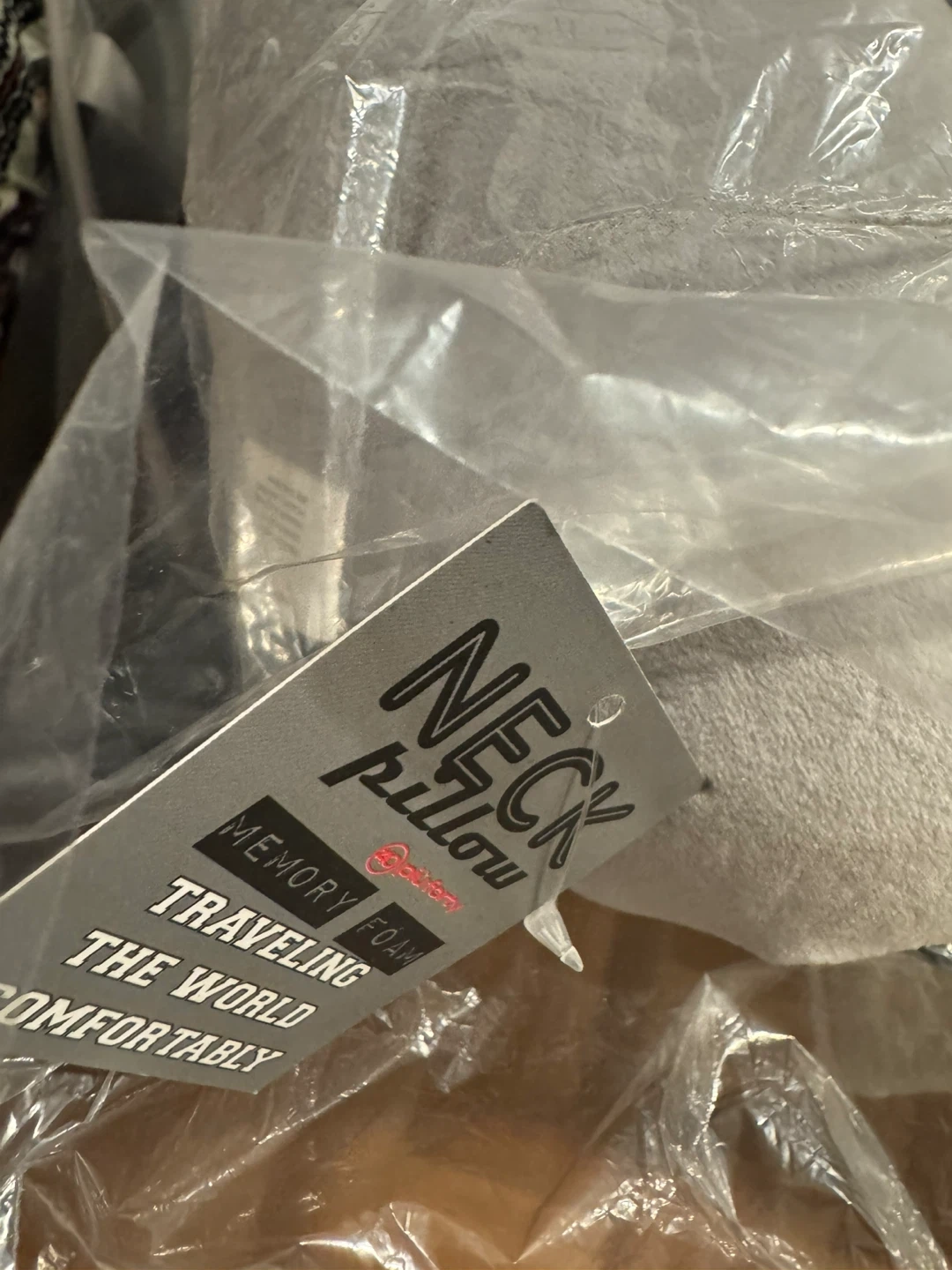 I'm selling a memory foam neck pillow designed for traveling the world comfortably! It appears to be in new condition and comes in its original packaging. It's a soft, comfortable pillow perfect for long trips.(bought extra)