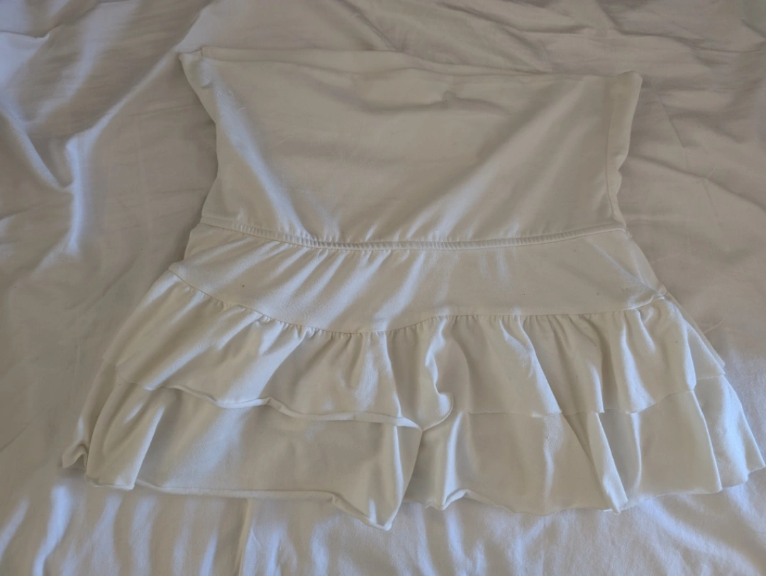 Selling a cute white mini ruffle skirt. It's in good condition but has some small spots. Can remove with stain remover.