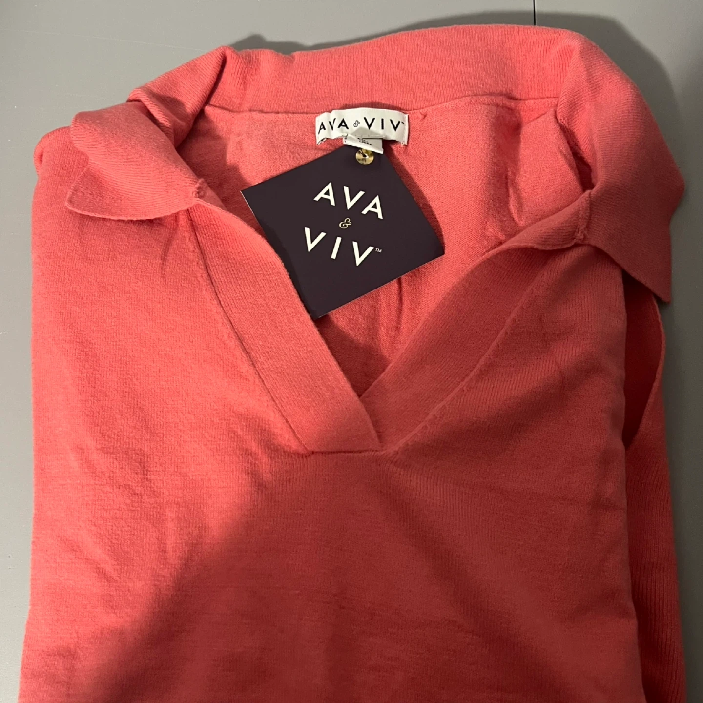 Coral-coloured dress from AVA & VIV in a size 3X! It's in great condition and has a tie around the waist. Perfect for a casual day out or dressed up for an evening event