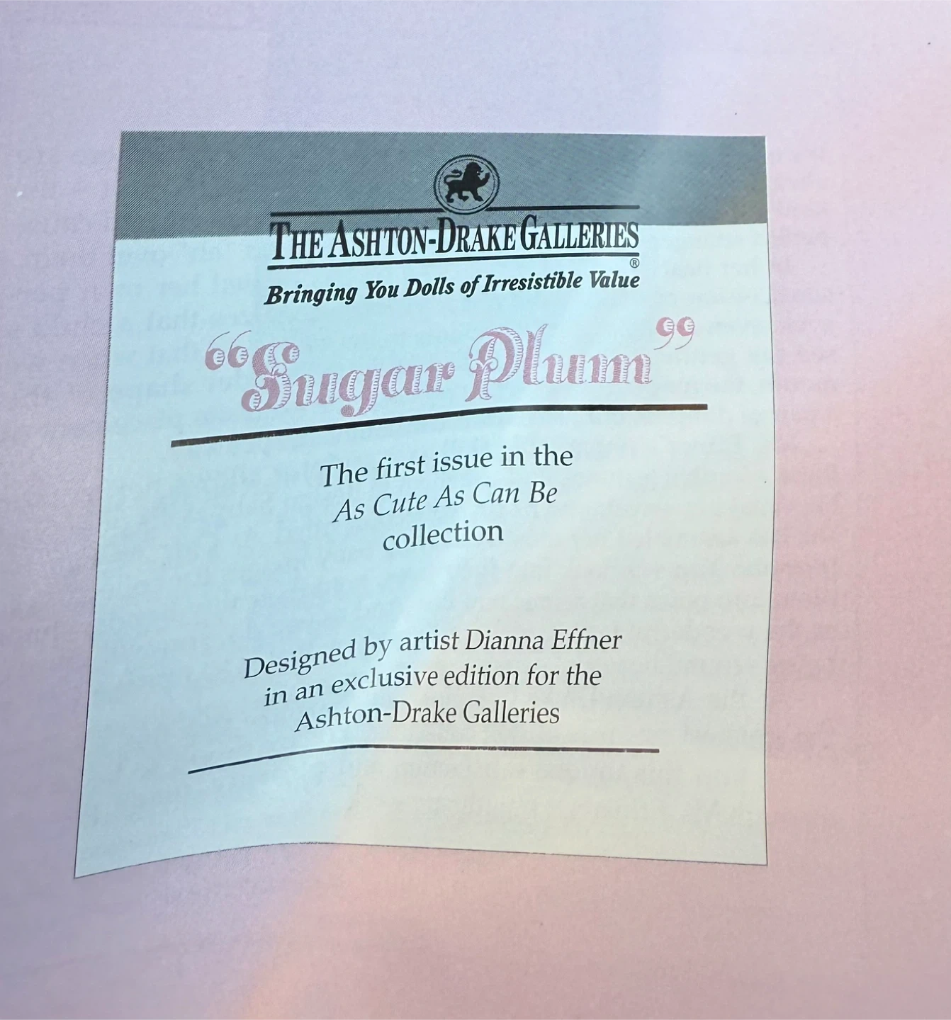 Attention Collectors: The Ashton-Bridges Galleries collectible of dolls. This is the ‘sugar plum’ of the first edition of the ‘cute as can be ’ collection. Porcelain.