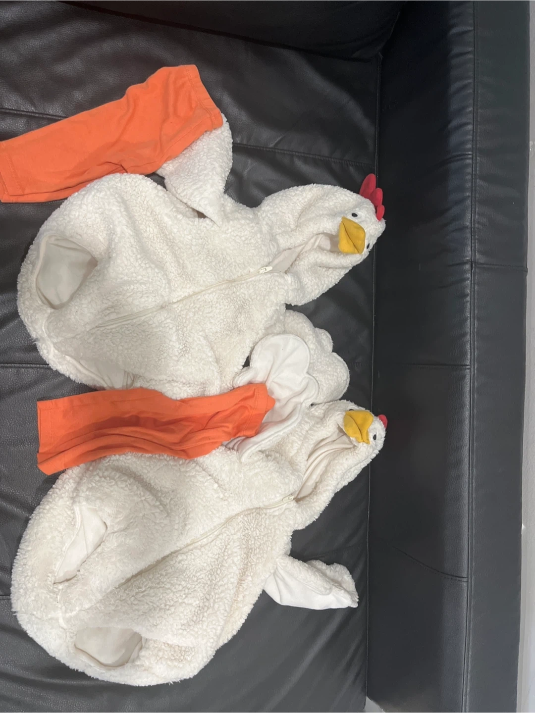 Selling two adorable chicken costumes! Perfect for dress-up.