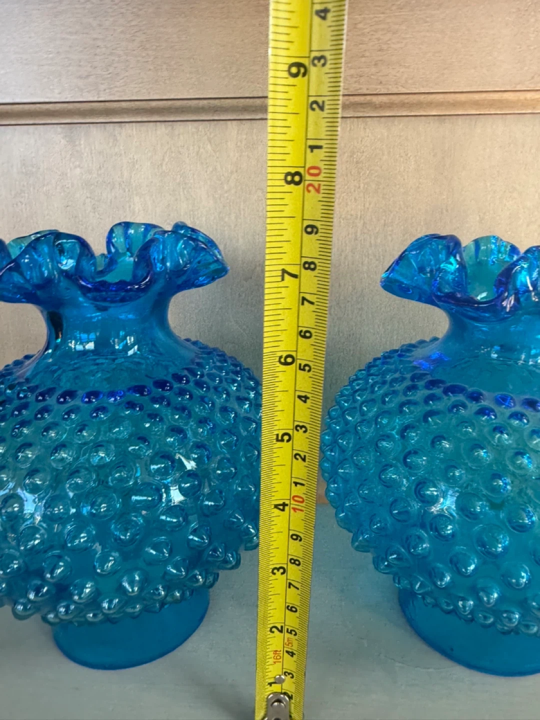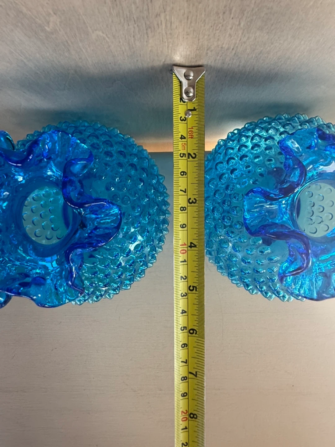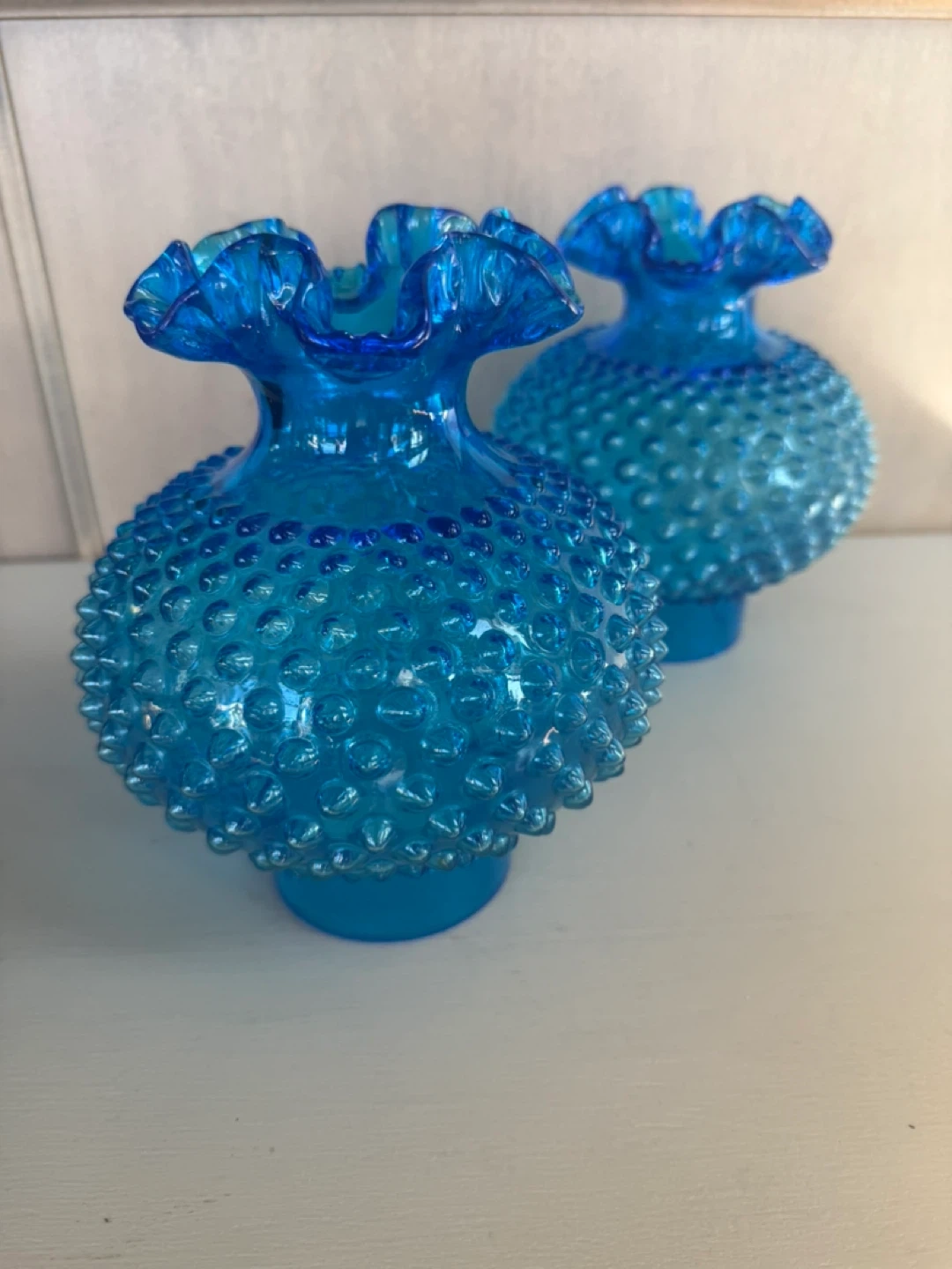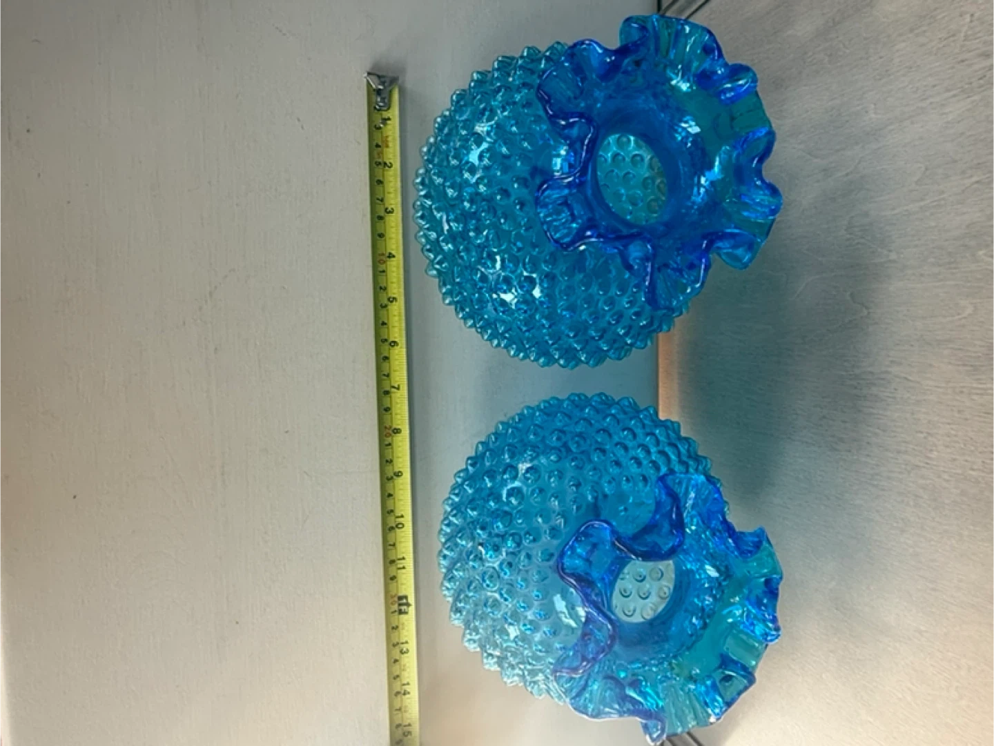 Selling a pair of lovely unmarked but researched to be Fenton glass hurricane lampshades (shades only). The beautiful colour would compliment any type of oil lamp or fitter lamp. Both are in excellent condition with no damage noted. Could be used over Price is for the pair.