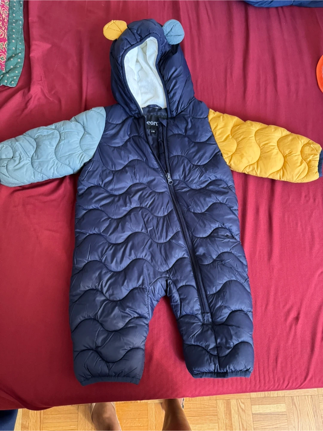 Selling a rarely used George brand baby snowsuit. It's sized 3-6 months. The snowsuit features a cozy hood and a full-length zipper for easy dressing. Perfect for keeping your little one warm and snug during chilly weather!