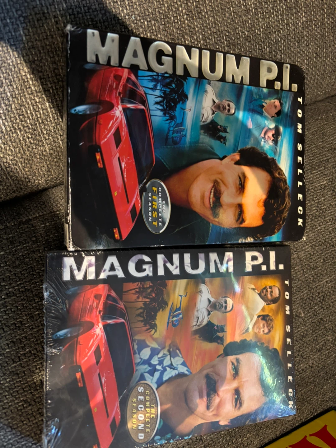 Selling the complete first and second seasons of Magnum P.I. starring Tom Selleck. Both are still sealed!