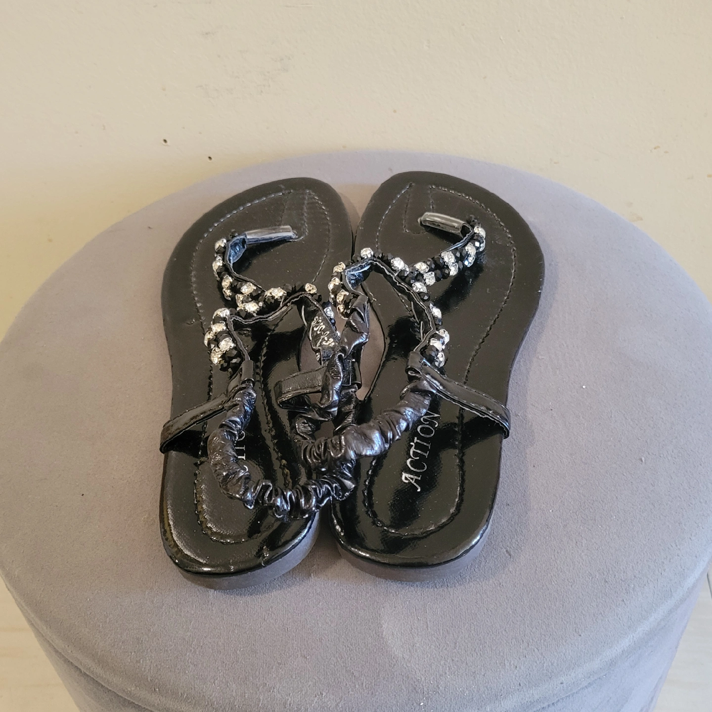 Cute black sandals from Reaction! They have a bit of sparkle, perfect for adding a little something to your outfit. In great condition and ready for a new home