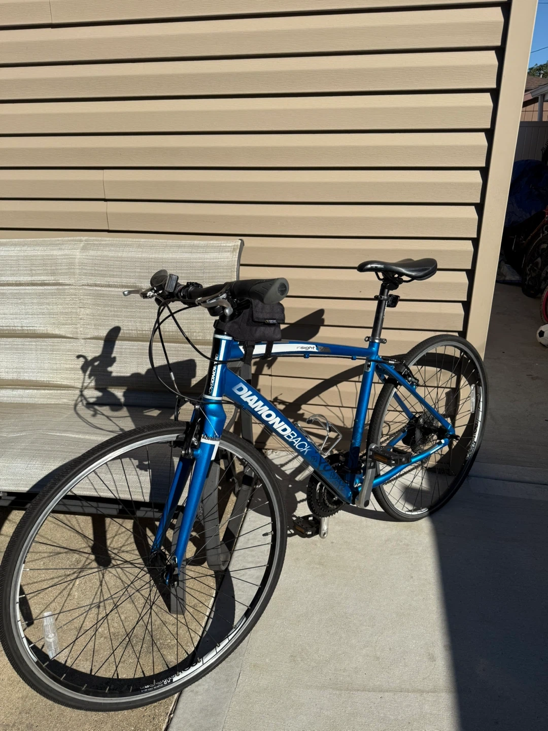 Selling a Diamondback Insight hybrid bike in blue. It's in good condition and ready for a new owner. Great for commuting or recreational rides!