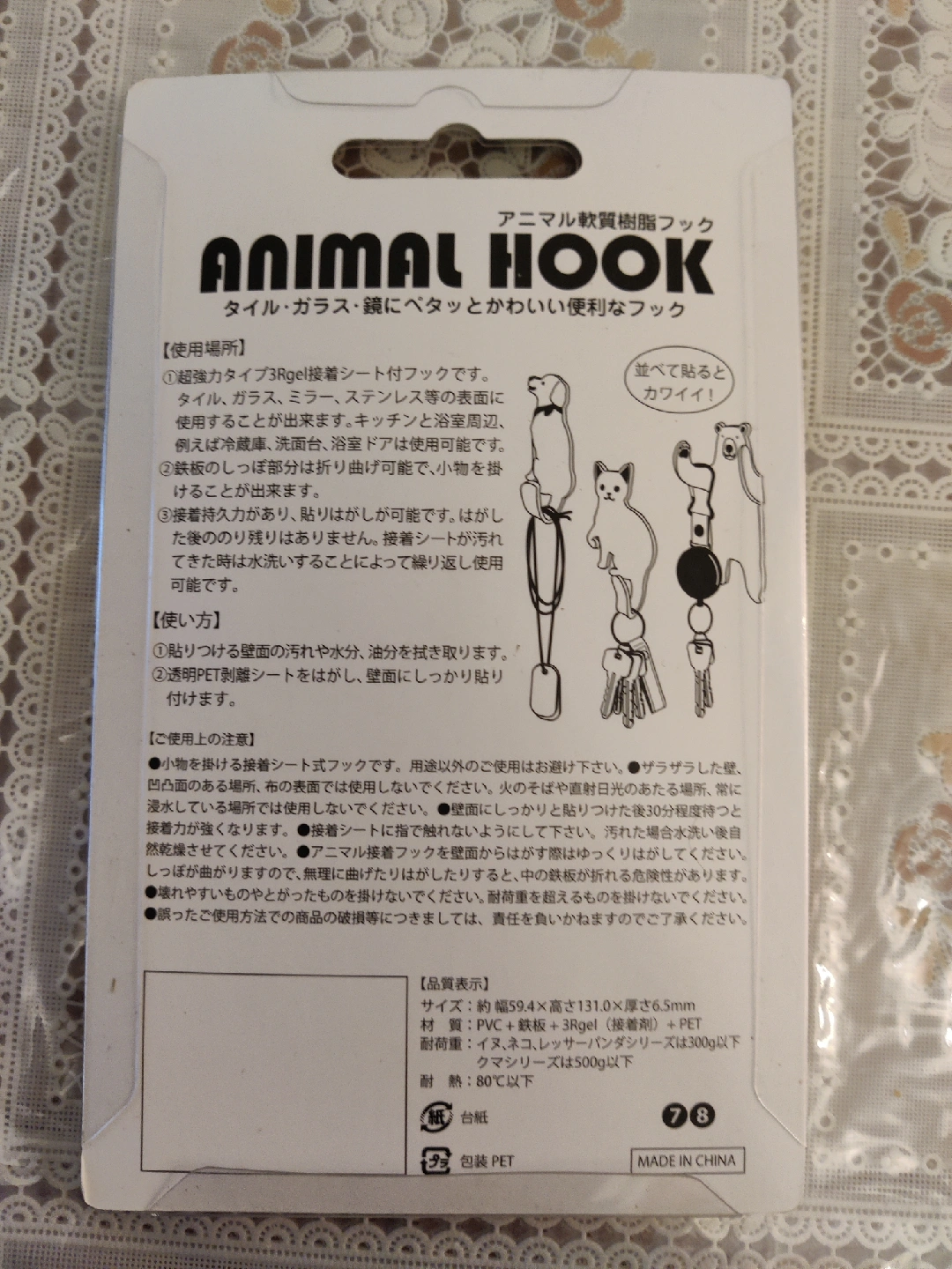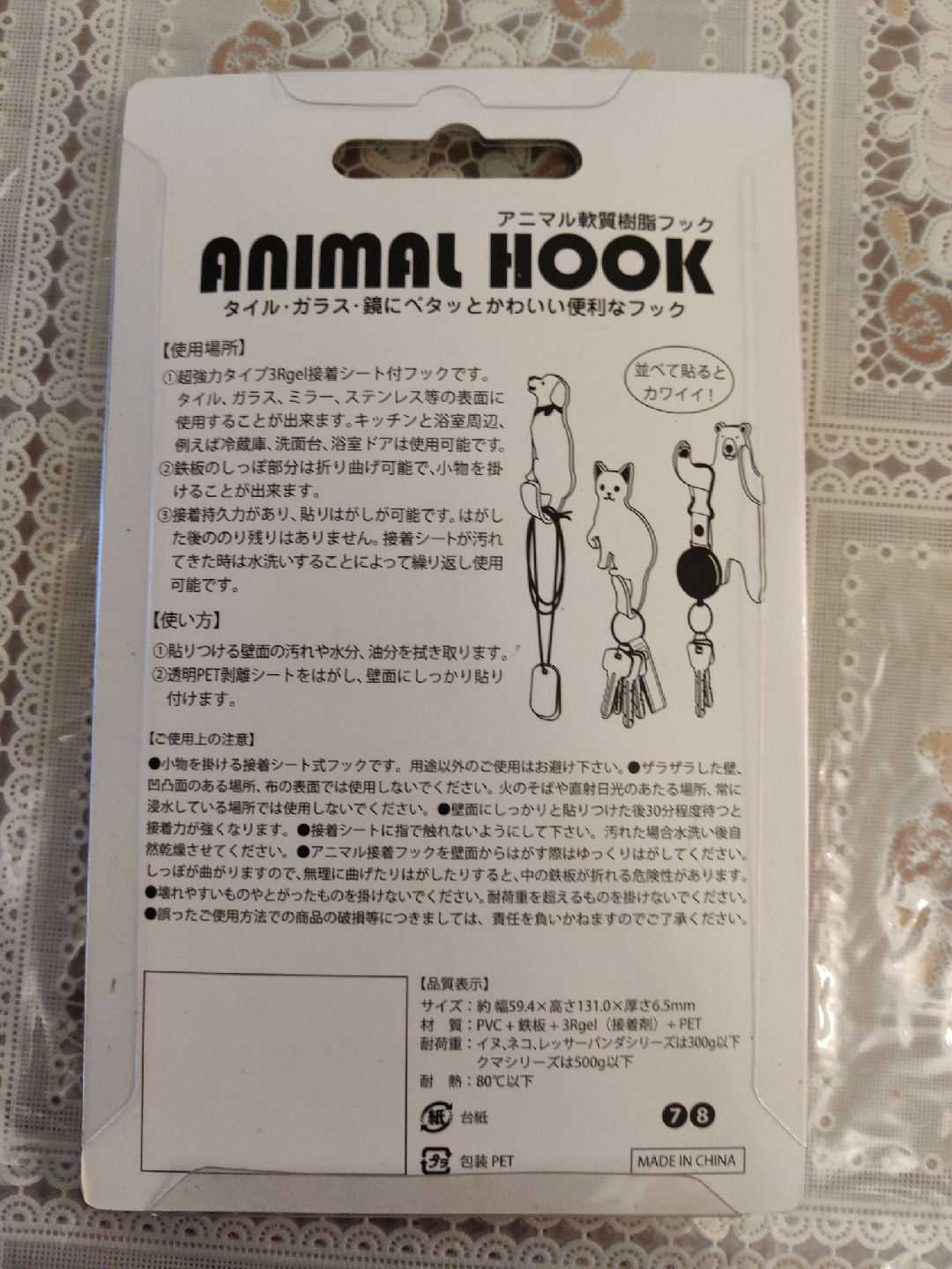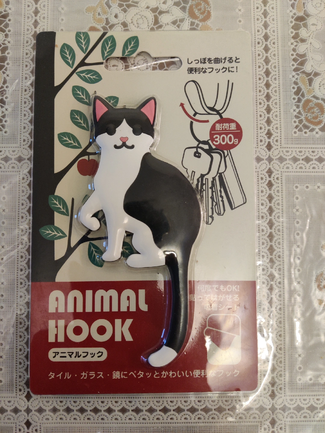 Cute animal hook featuring a black and white cat design! Perfect for adding a touch of whimsy to your home while keeping your keys or small items organized. Can be used on tile, glass, or mirrors! It can hold up to 300g.