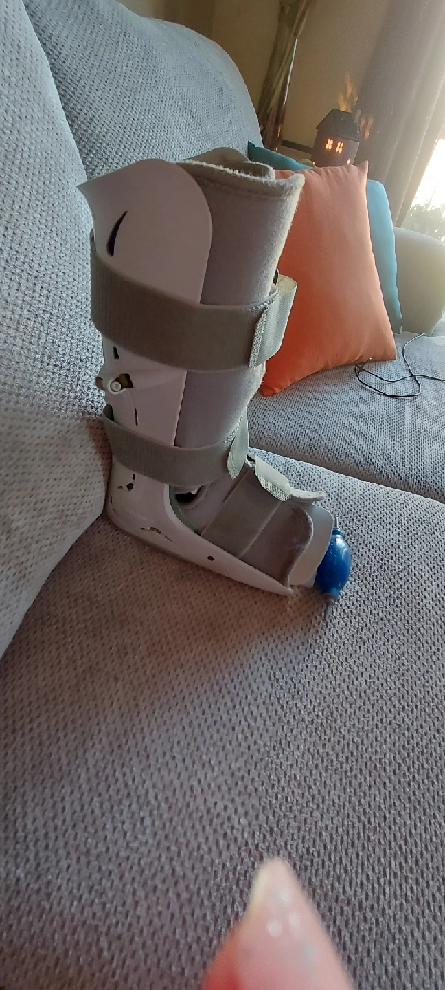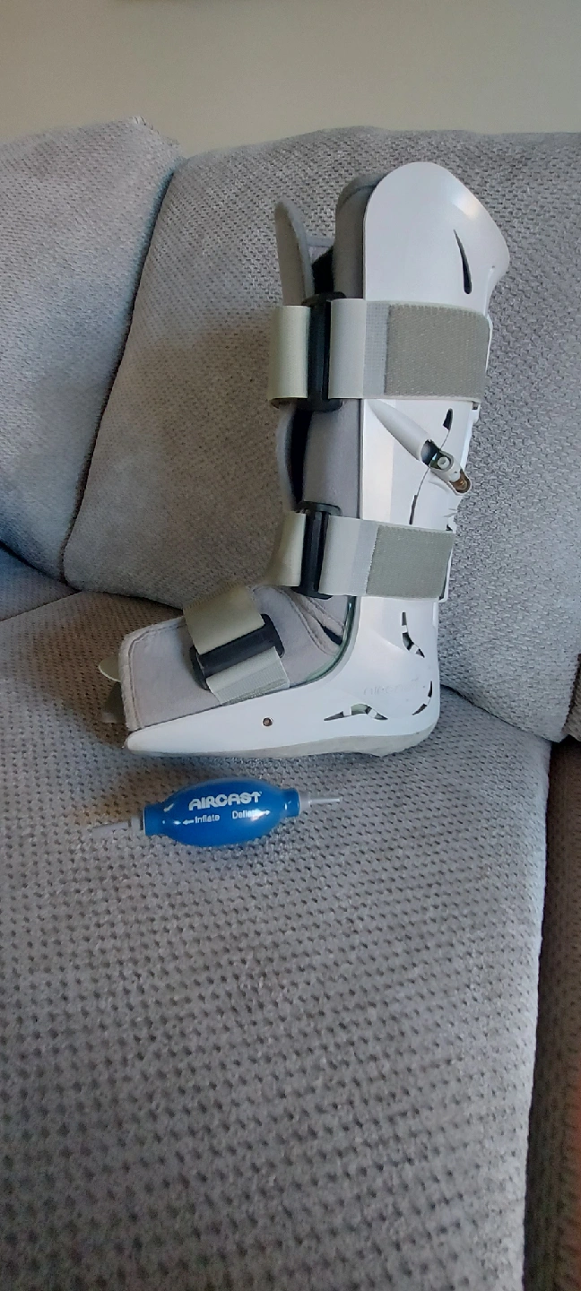 Selling an Aircast walker boot. Size small woman. It comes with all the parts you see in the photos, including the blue inflator. Great for helping with foot or ankle injuries!