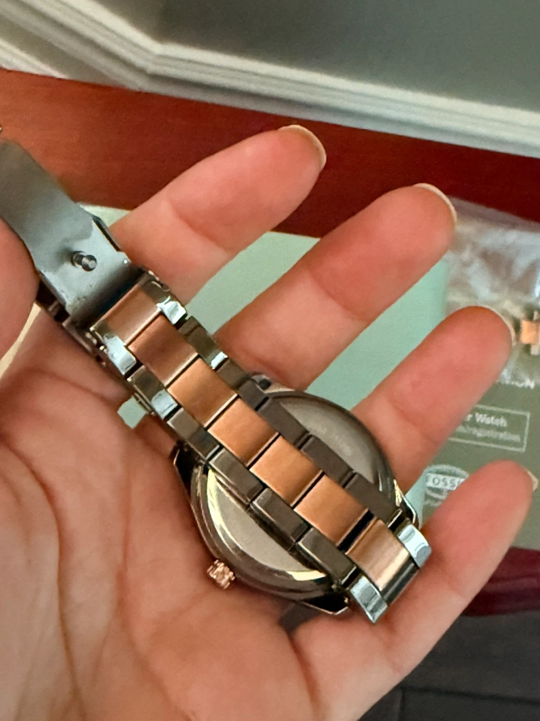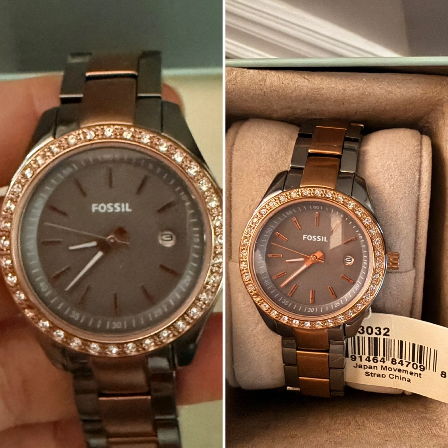 Selling a Fossil women's watch. Round rose gold and gray two-tone stainless steel .
