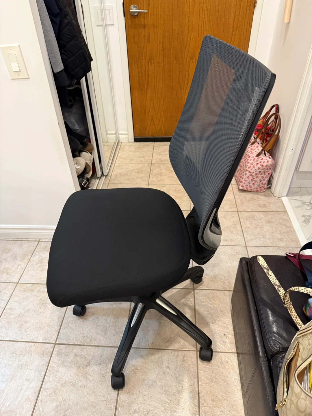 Selling a gently used black mesh office chair. It’s in great shape and ready for a new workspace! The mesh back provides great support and breathability, perfect for long hours at the desk