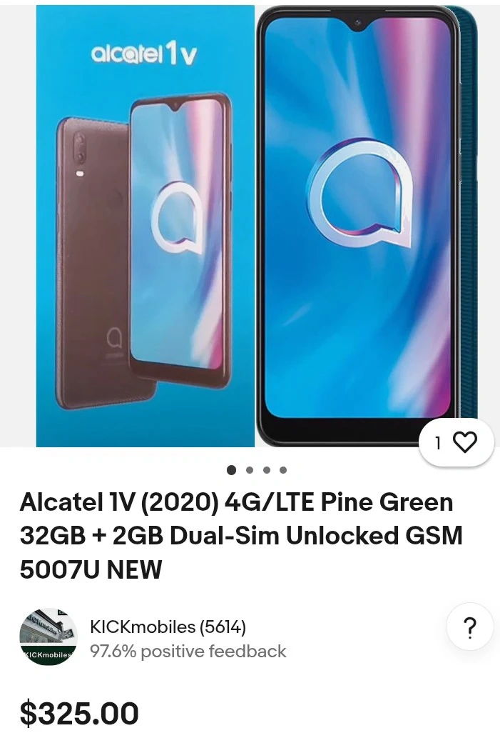 Selling a newly used Alcatel 1V (2020) in a lovely pine green colour! It features 32GB of storage and supports 4G/LTE. It's a dual-sim unlocked GSM phone, model 5007U. Originally listed for $325, now selling at an amazing price of $100.00
