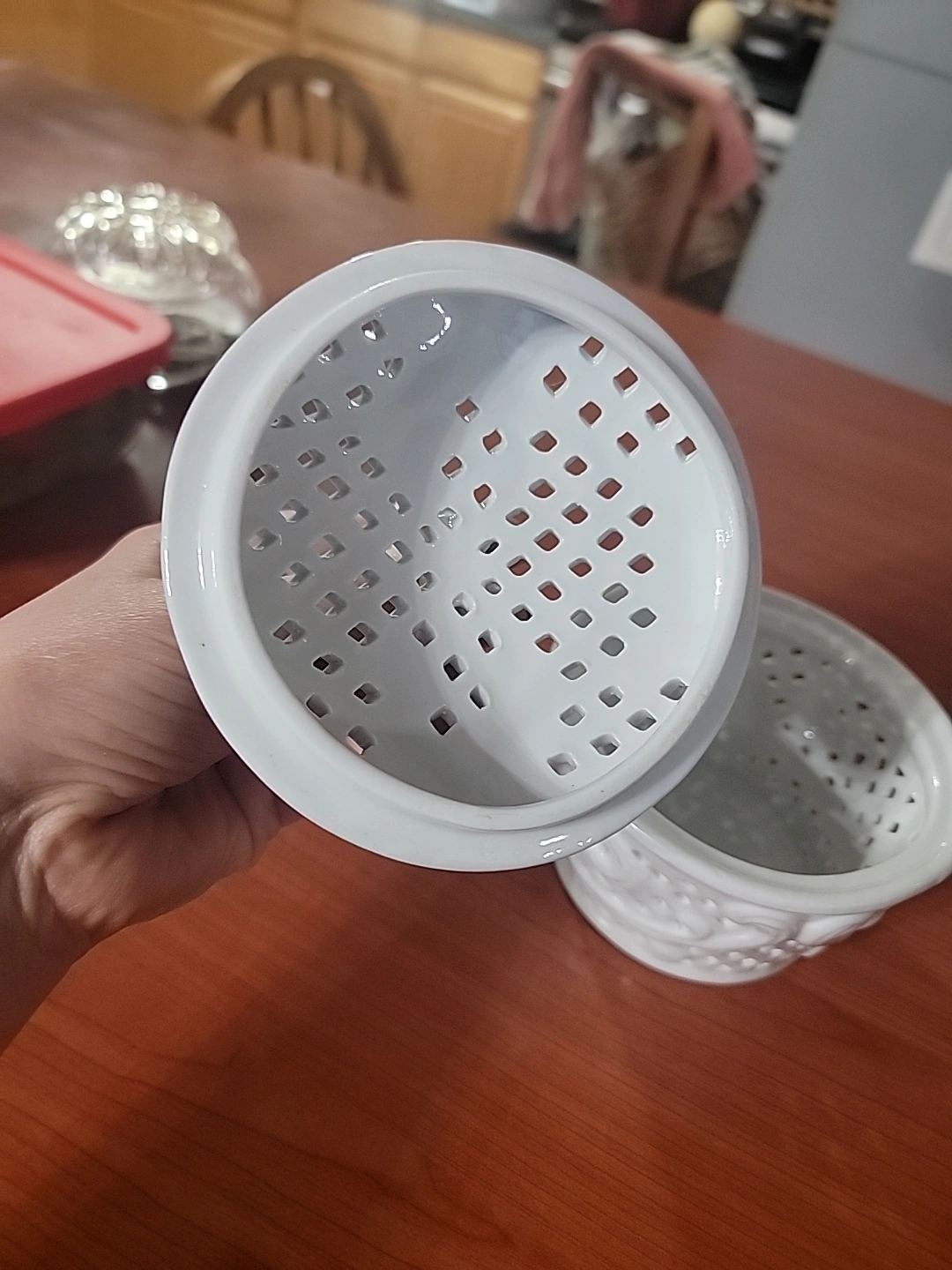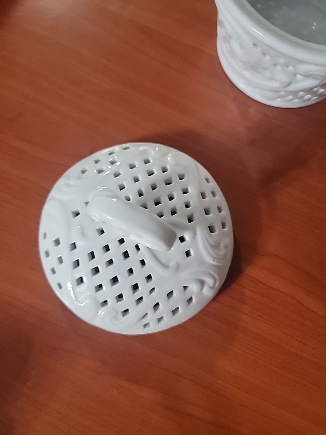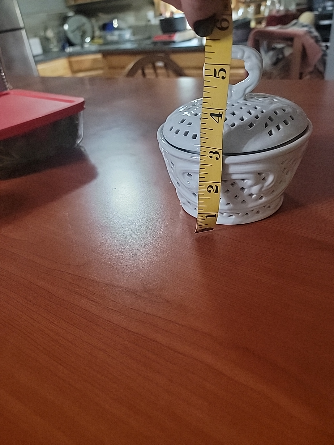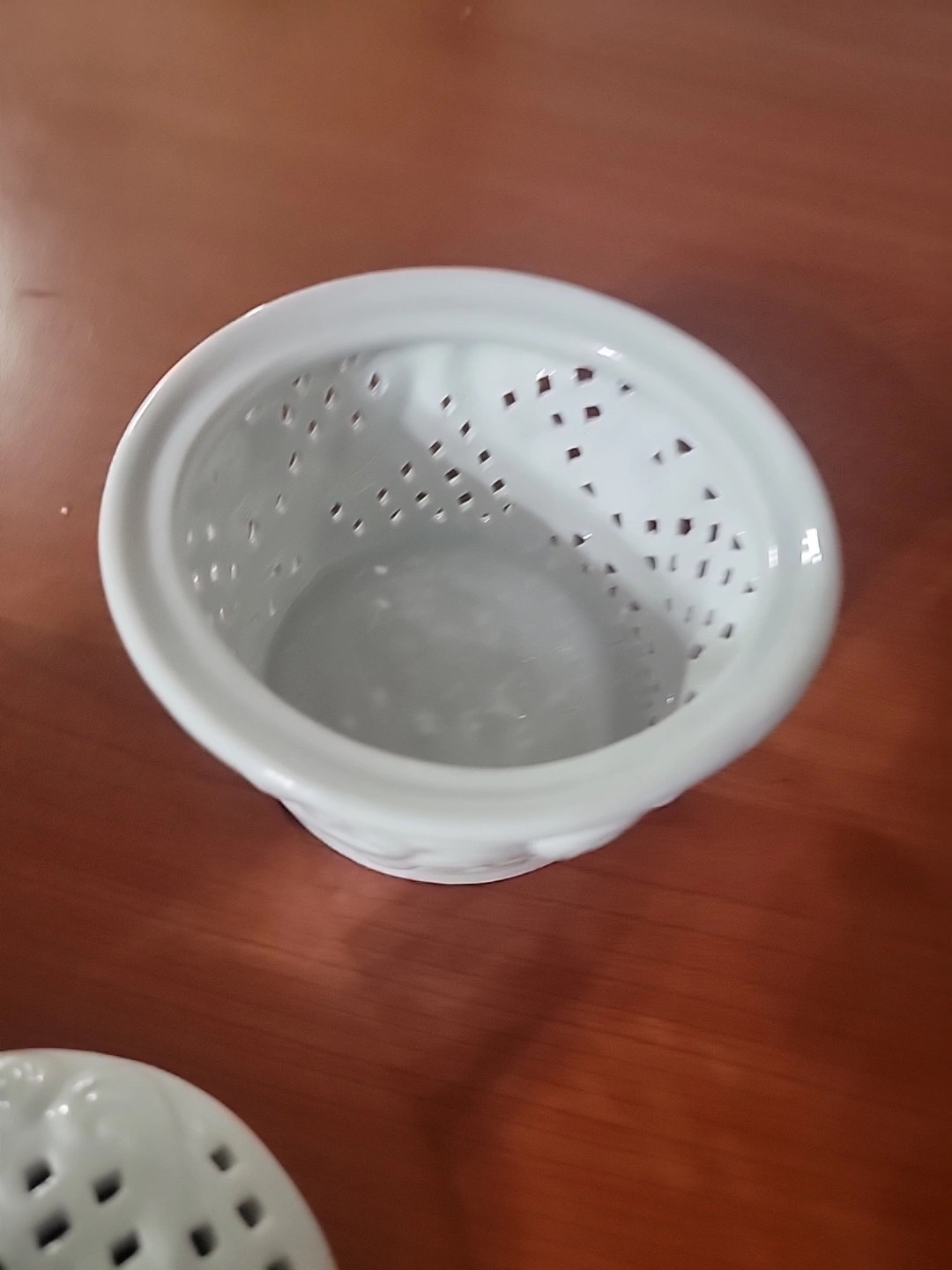 Here is a lovely RR Treasures porcelain covered dish! It features a beautiful swan design on the lid and intricate latticework details. It measures approximately 6 inches tall and is in great condition!