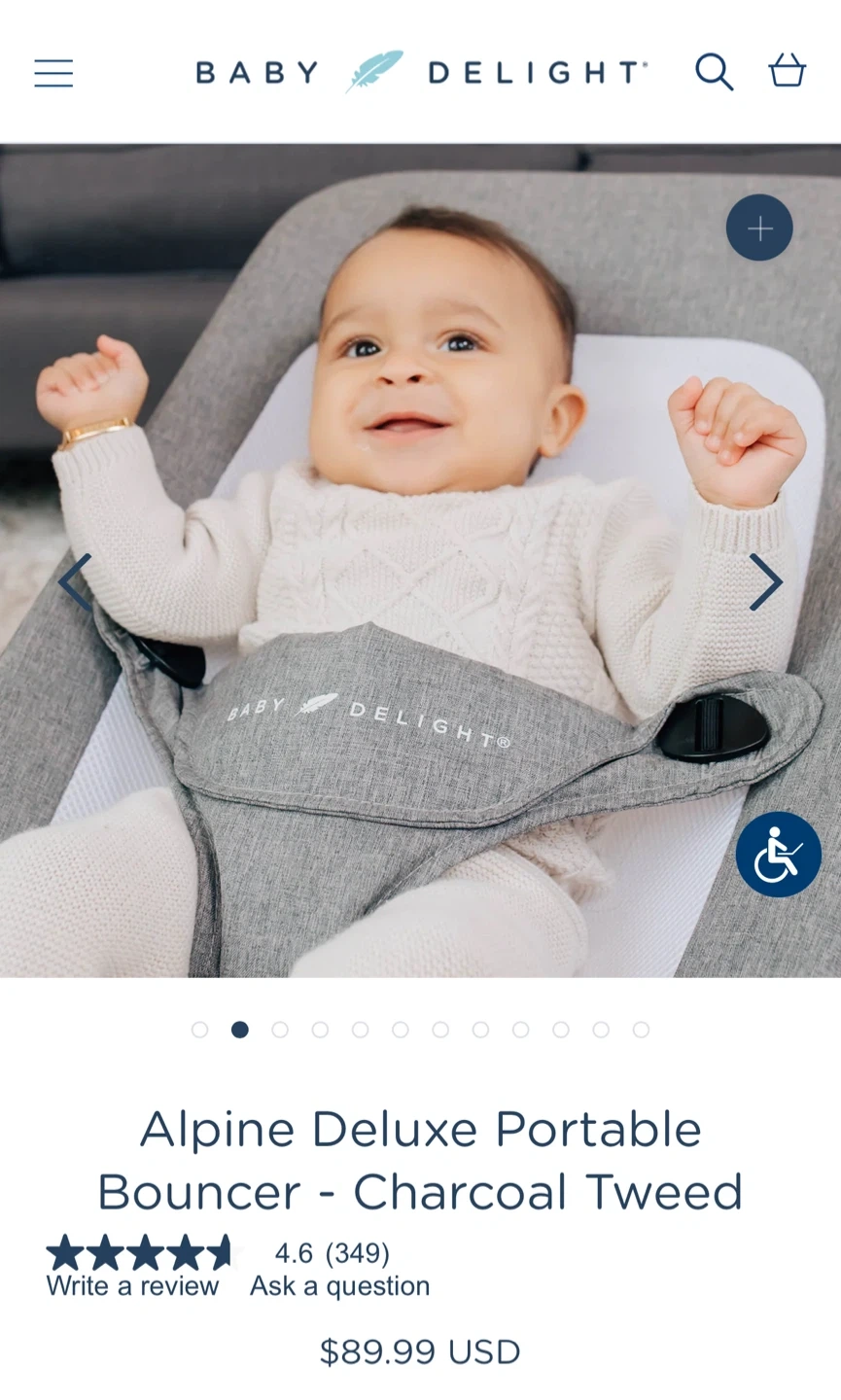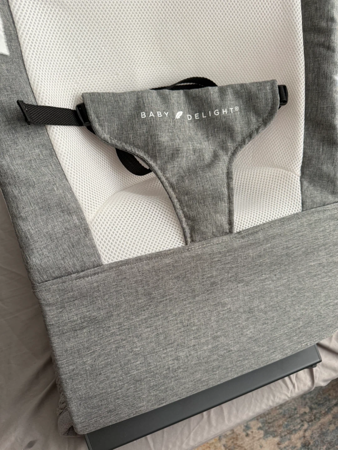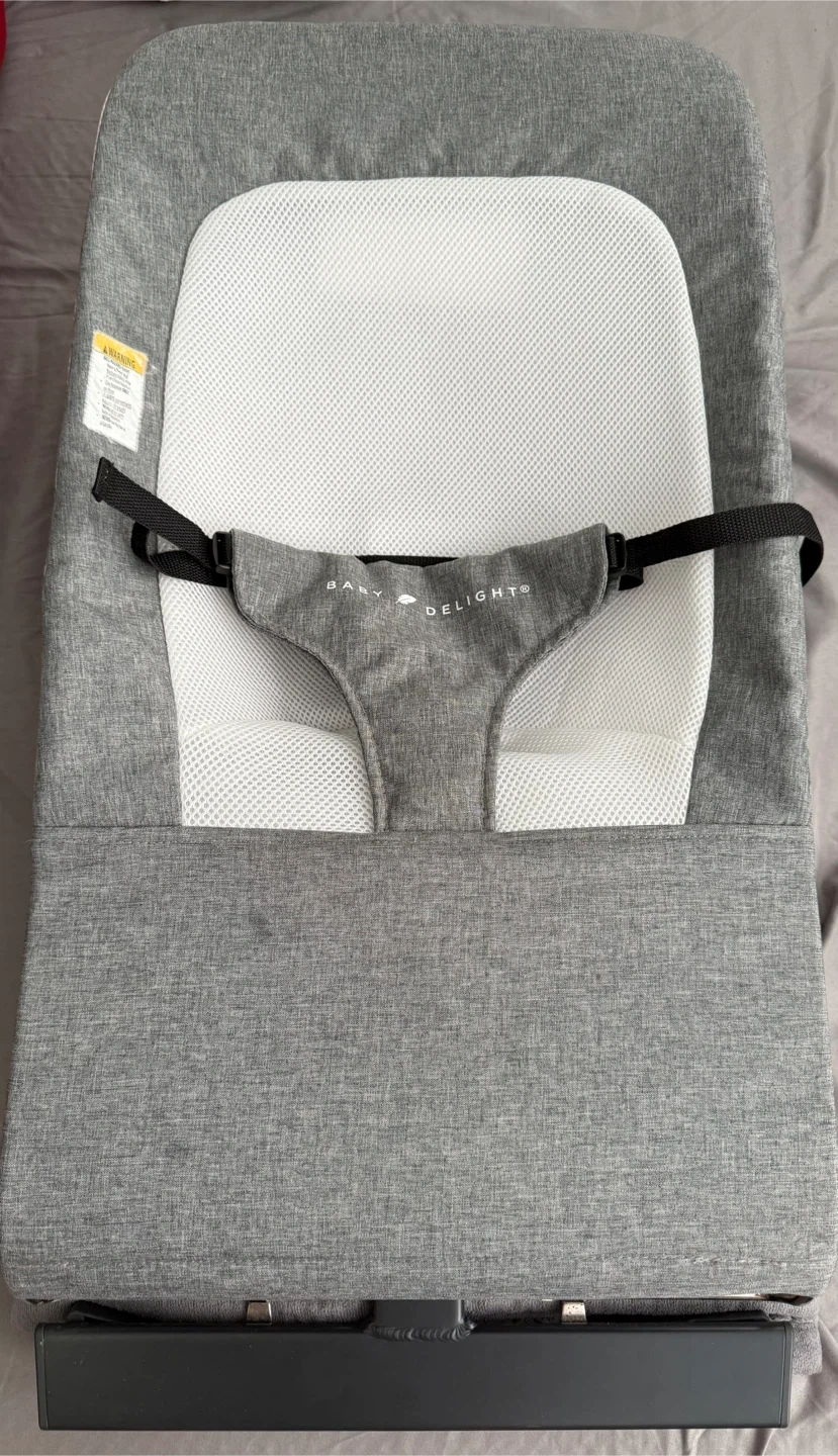 Selling a Baby Delight Alpine Deluxe Portable Bouncer in charcoal tweed. It's in great condition and originally retailed for $89.99