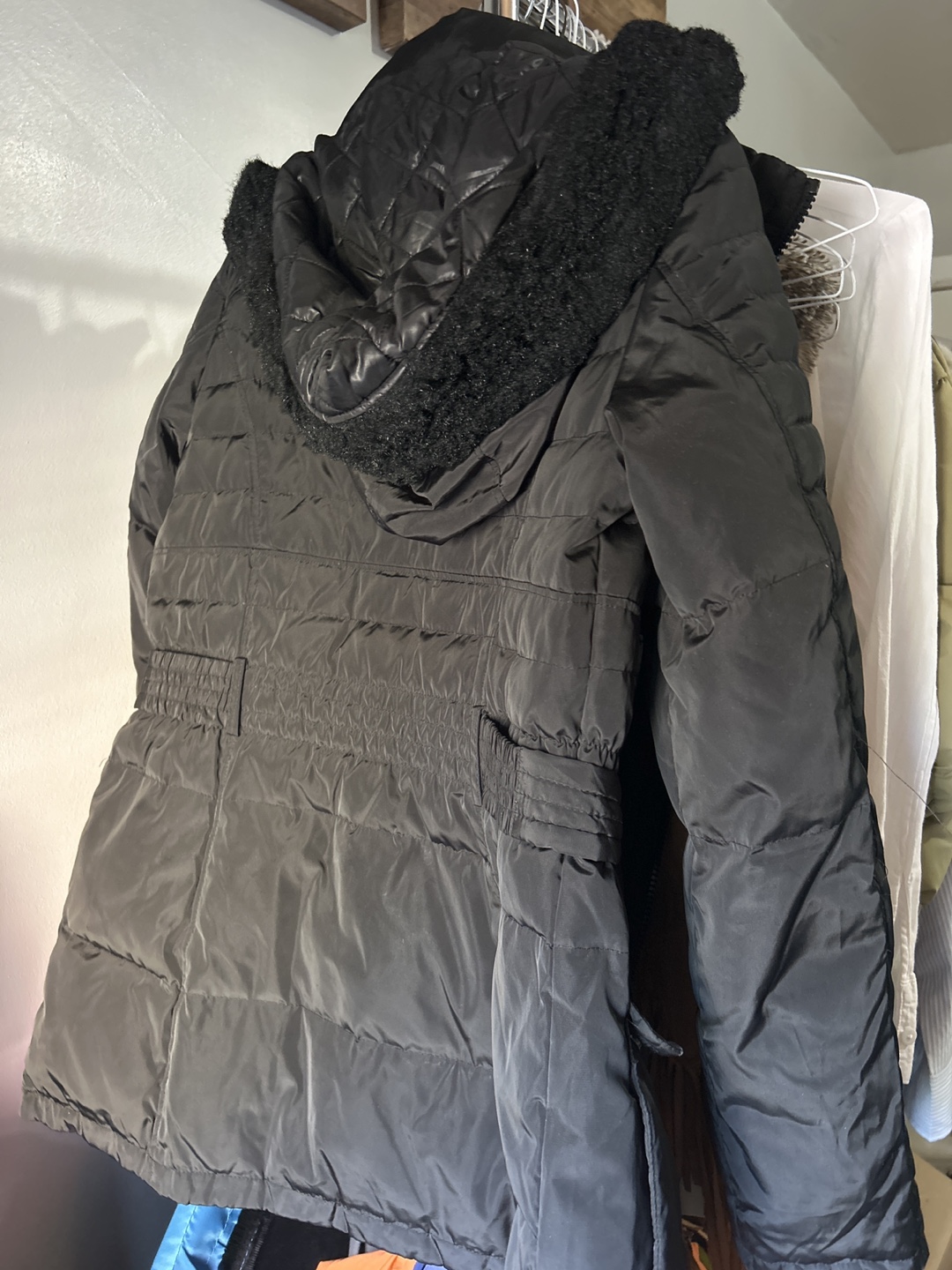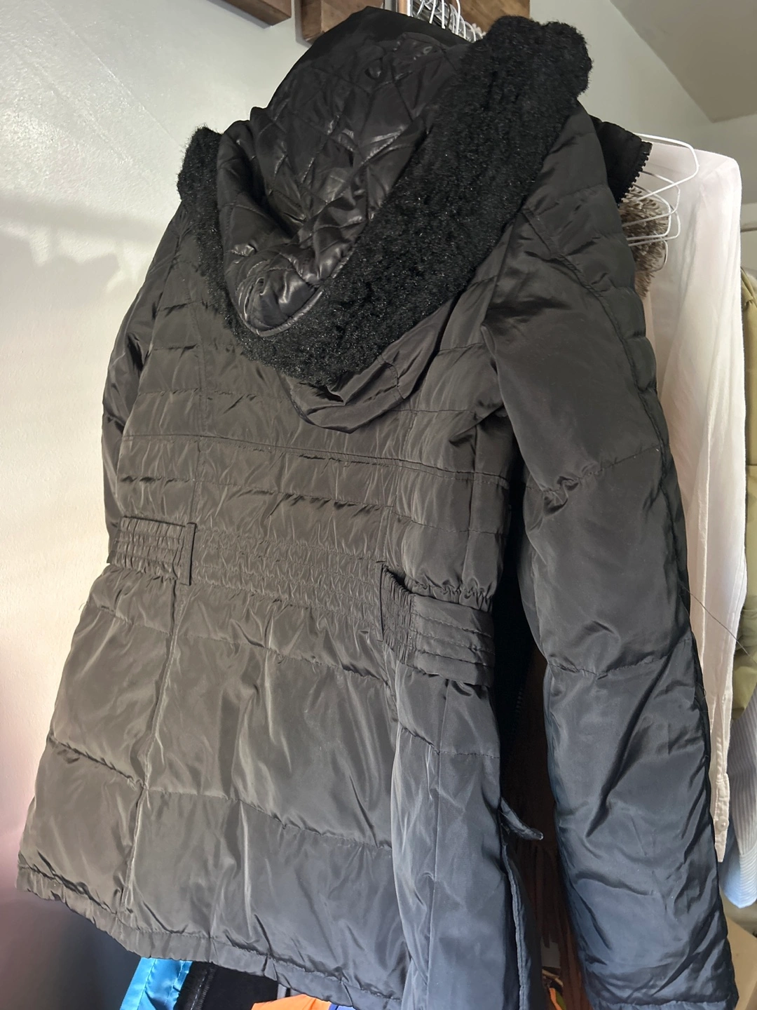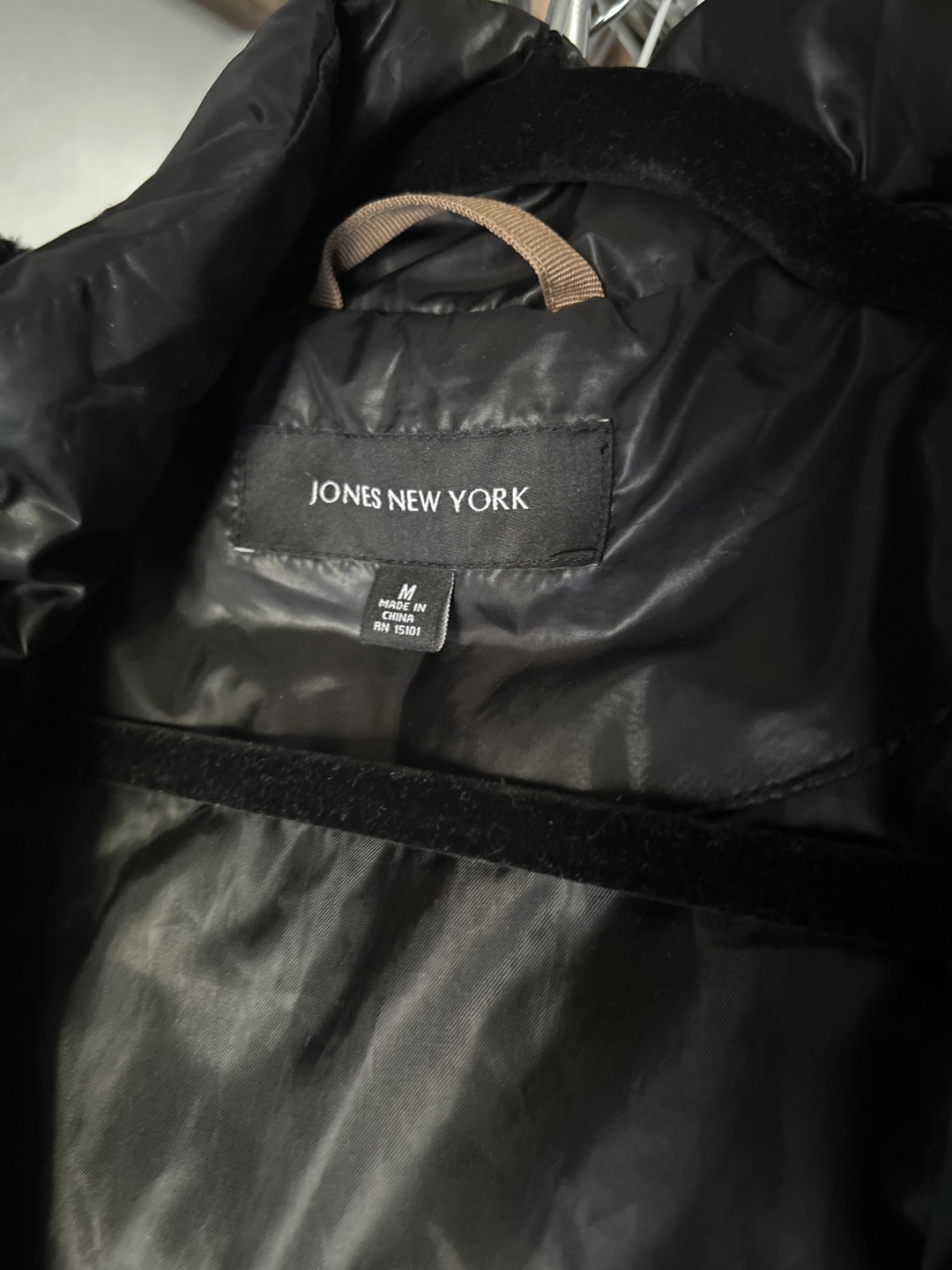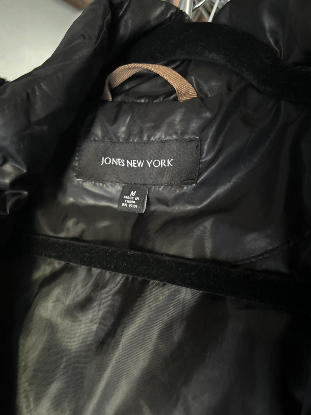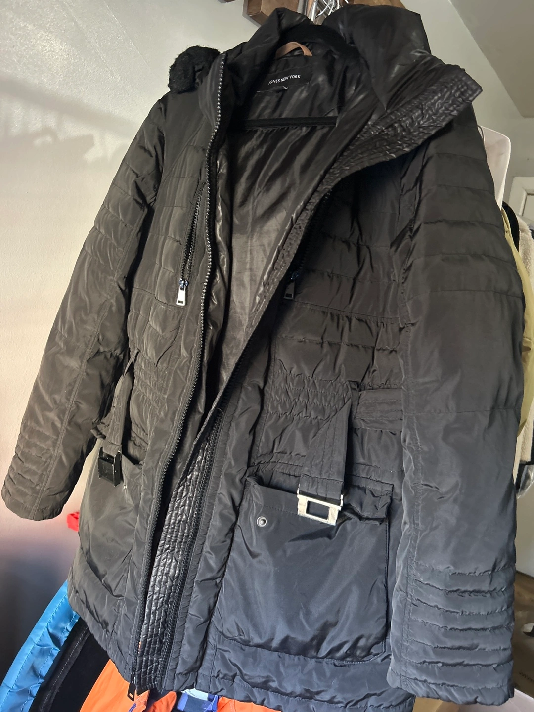 Selling a Jones New York puffer coat in black. It's a size M and has a stylish design. Perfect for staying warm during the colder months!