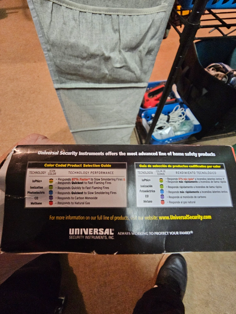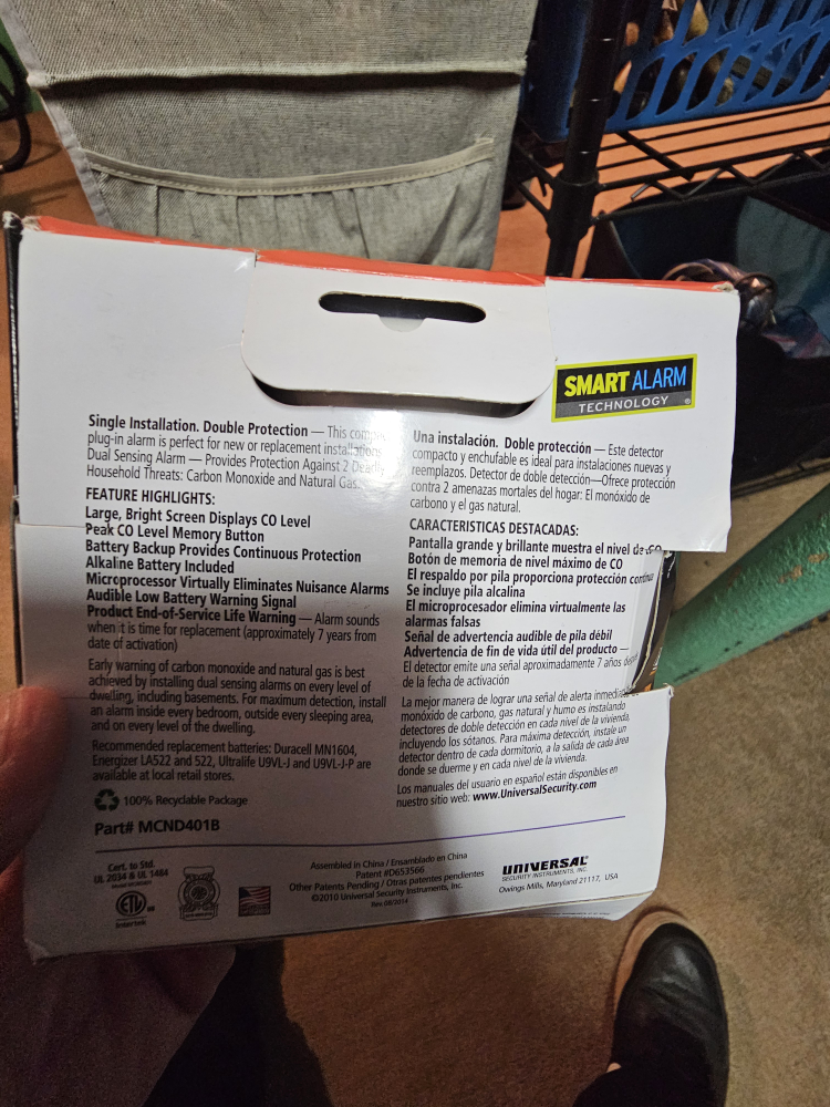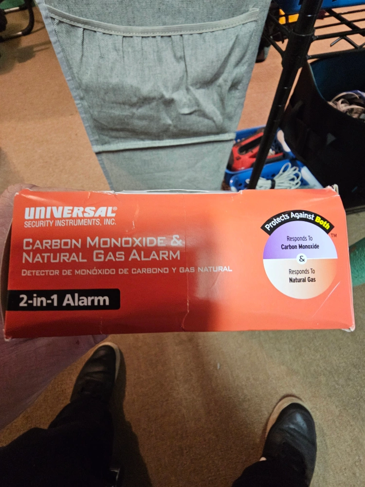 Selling a Universal Security Instruments carbon monoxide and natural gas alarm. It's a 2-in-1 alarm that protects against both carbon monoxide and natural gas. The product actual size is 2 1/2" x 4 3/8".