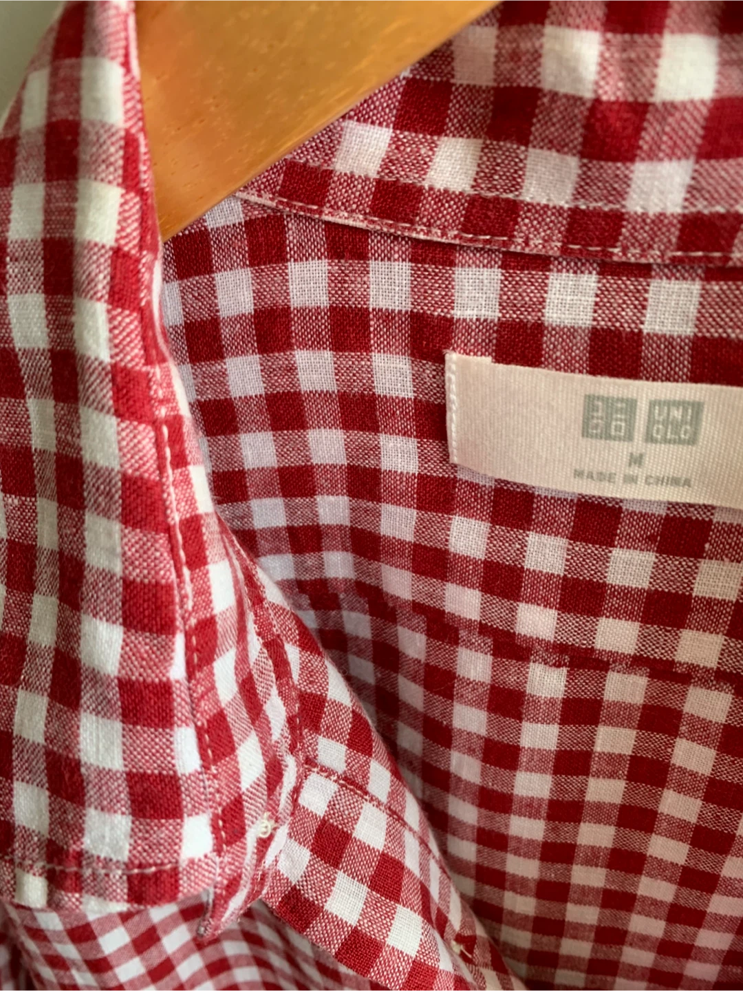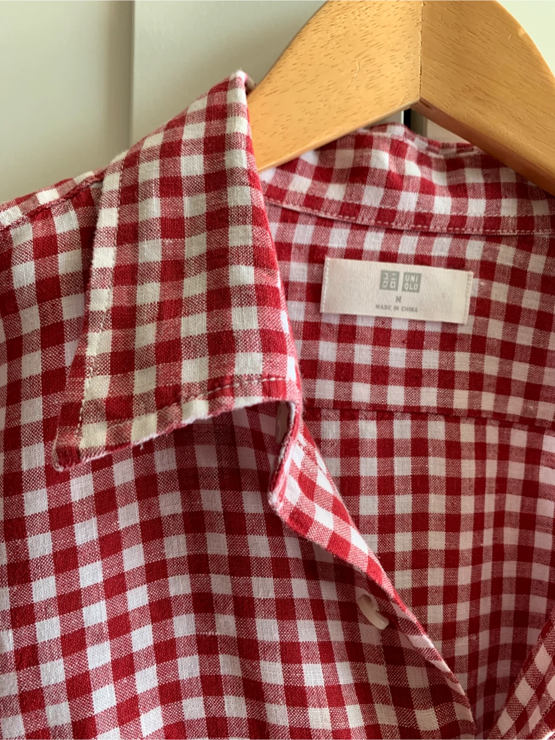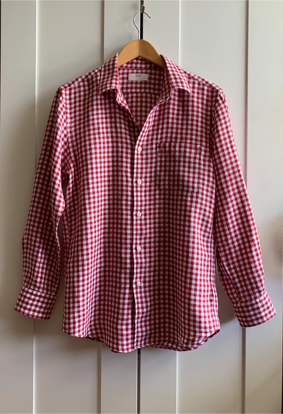 •Classic red and white gingham button-up shirt from Uniqlo in size-M.