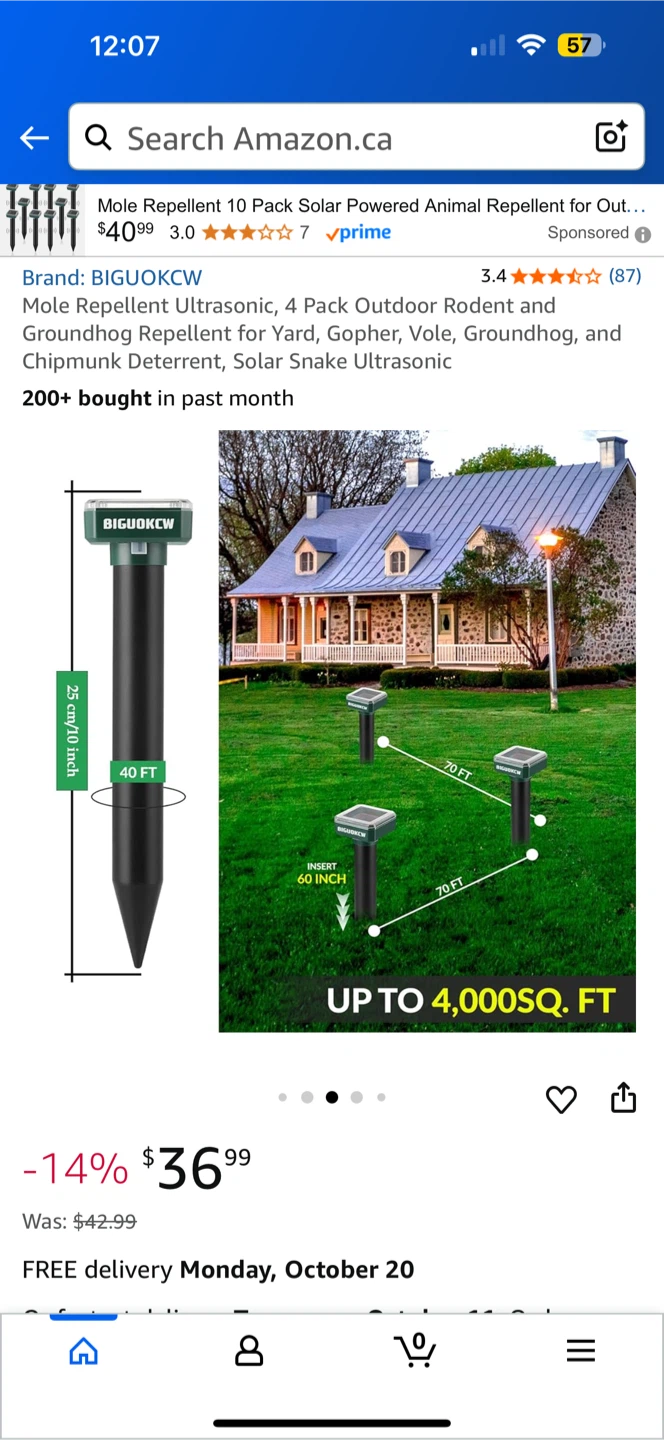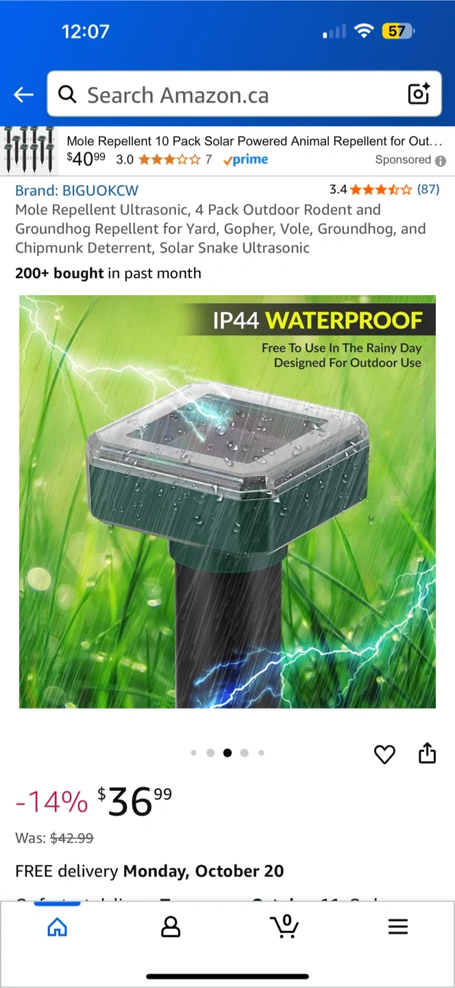 Keep your yard pest-free with this 4-pack of BIGUOKCW Mole Repellents! These ultrasonic devices are solar-powered and waterproof (IP44), making them perfect for outdoor use. They deter gophers, voles, groundhogs, chipmunks, and even snakes. Protect up to 4,000 sq ft of your garden!