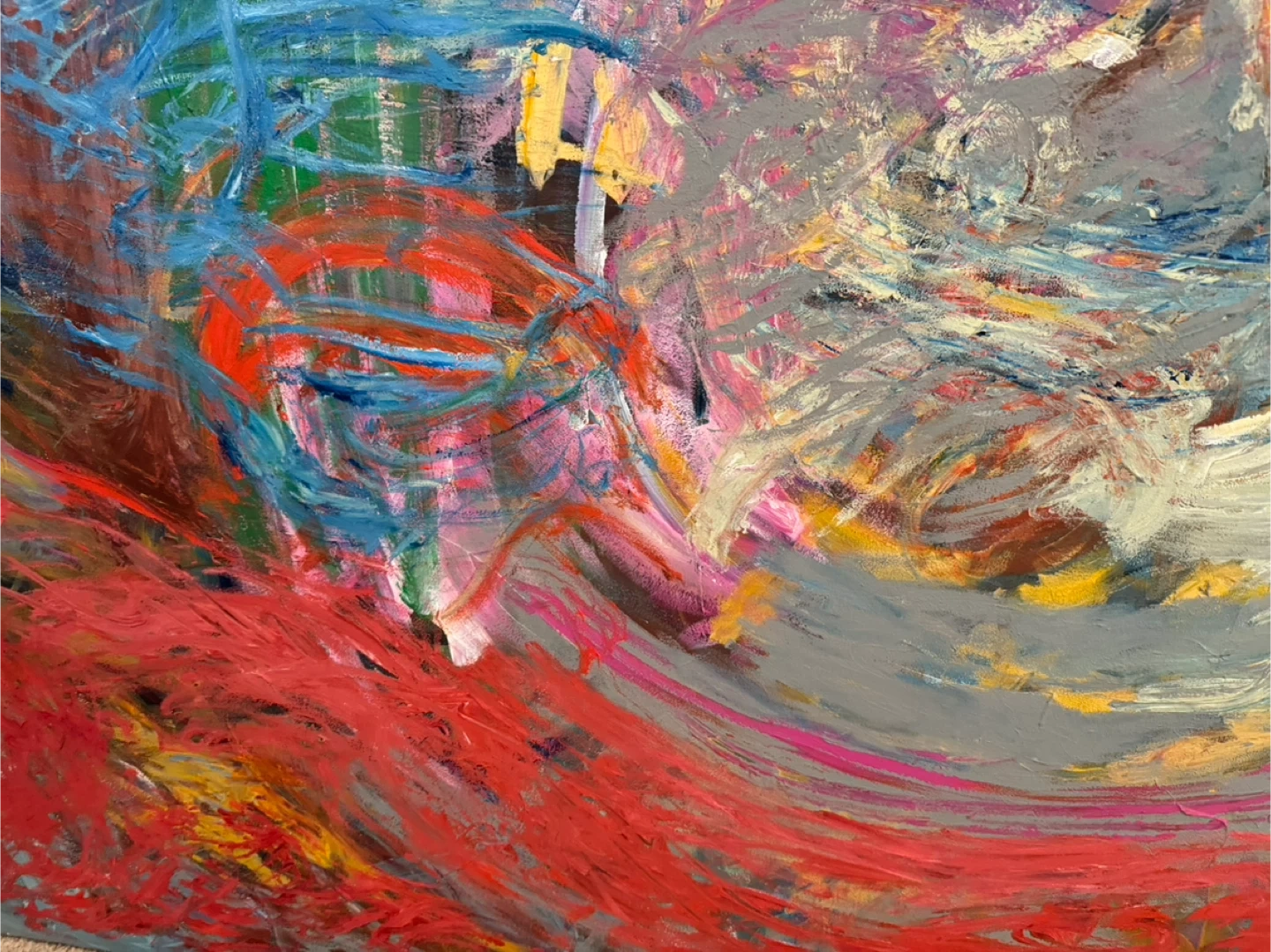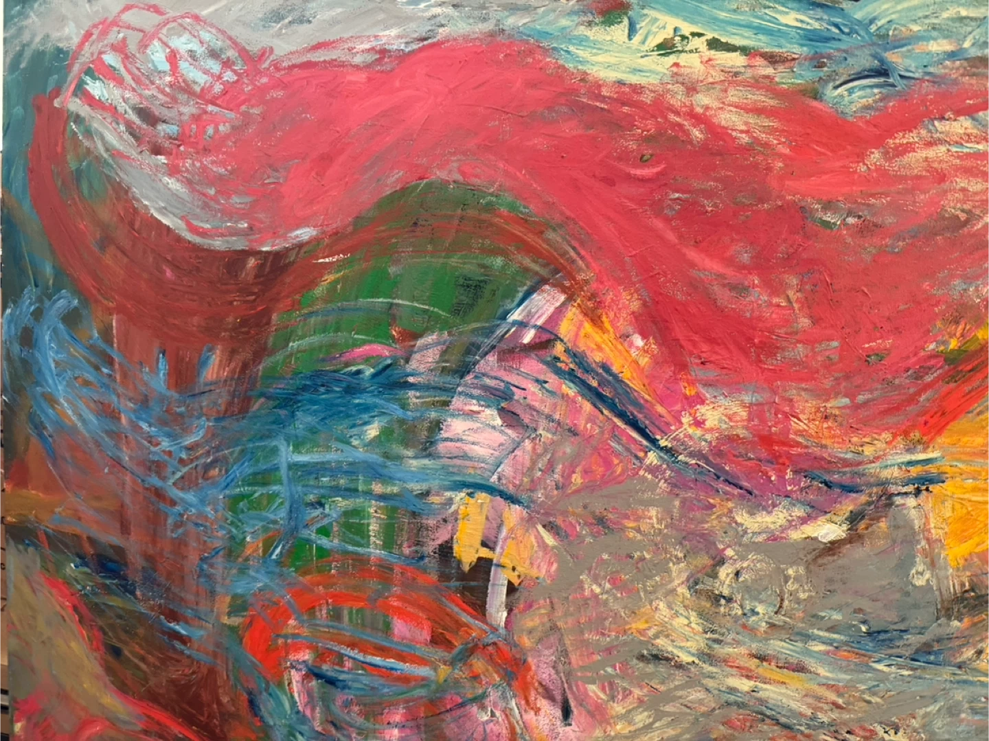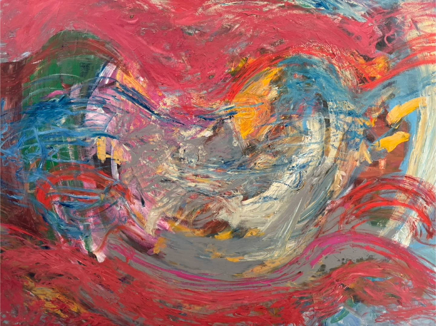 Vibrant colors and bold brush strokes of red, blue, and yellow adding life and color to your home or office.