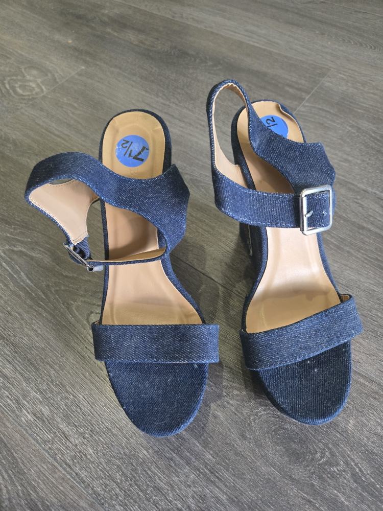 Denim Wedge Sandals - Size 7.5