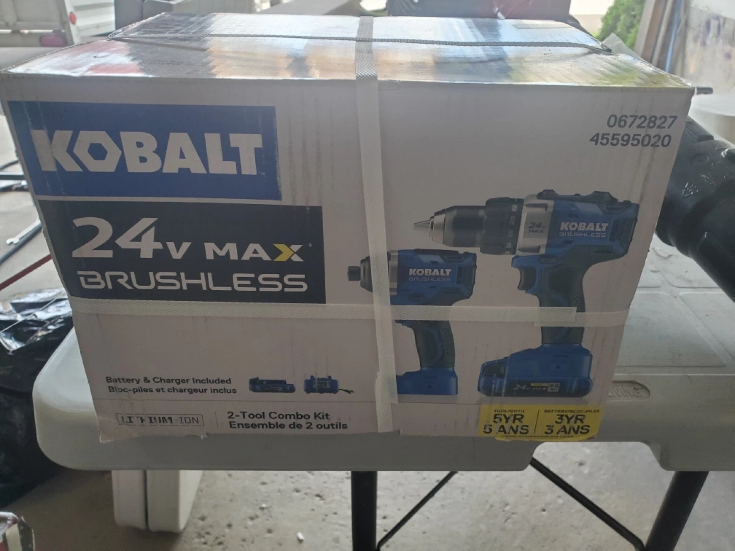 Selling a brand new Kobalt 24V Max Brushless 2-Tool Combo Kit! It includes the battery and charger, all still sealed in the original box. This combo kit is ready to tackle any project you have in mind