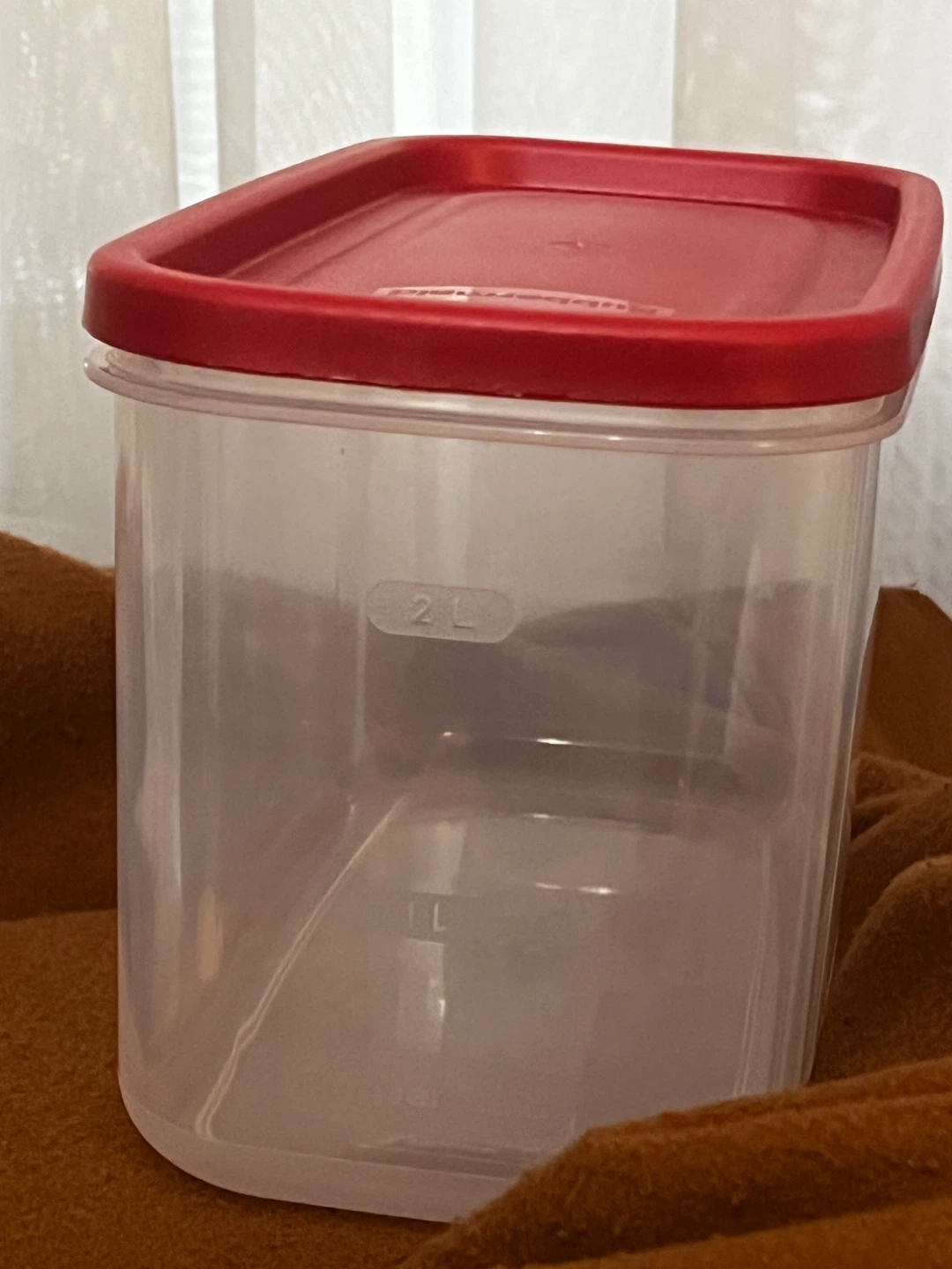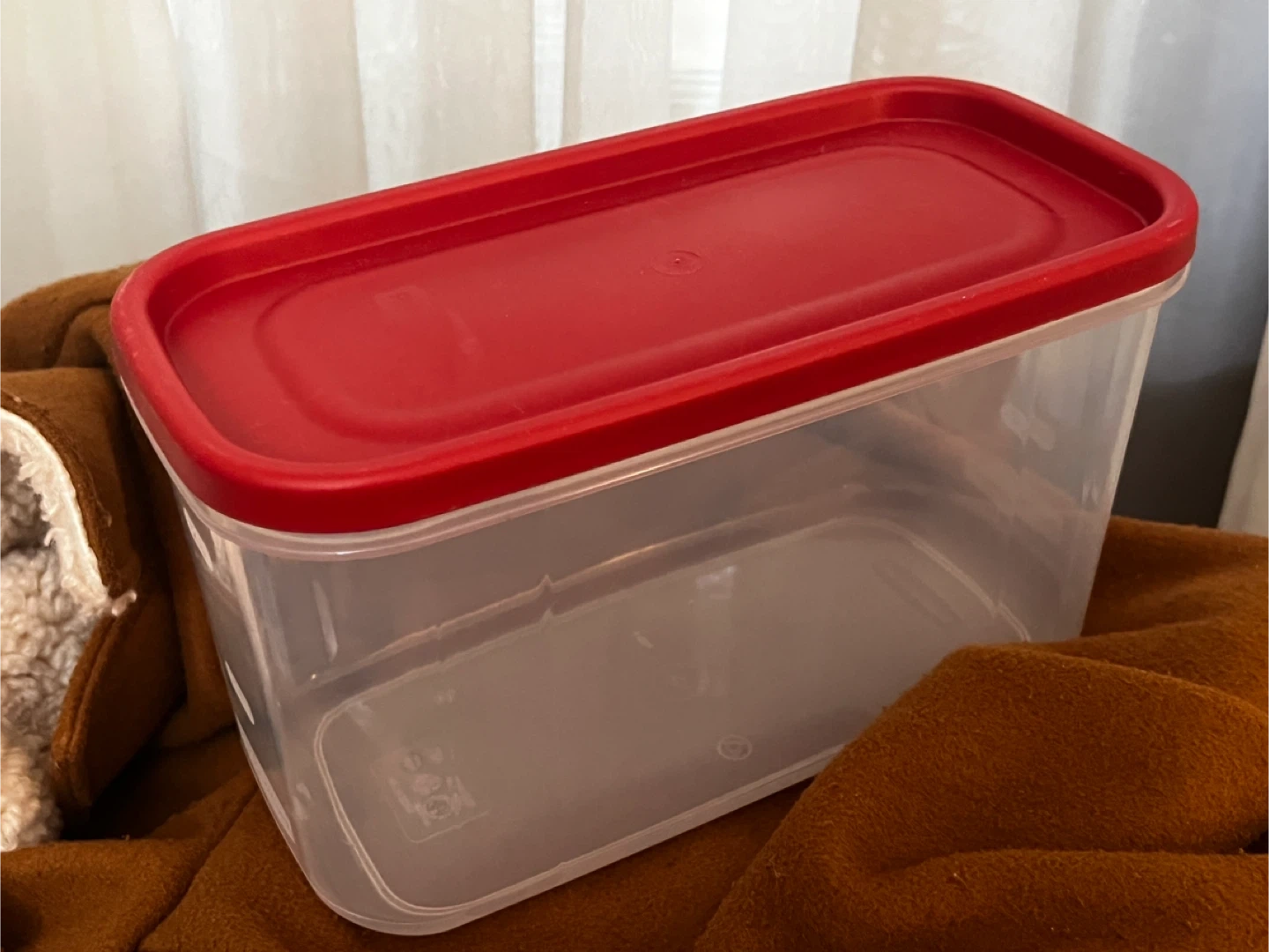 Give away a Rubbermaid food storage container. It's clear with a red lid and holds 10.9 cups (2.5L). It's also BPA free and top rack dishwasher safe