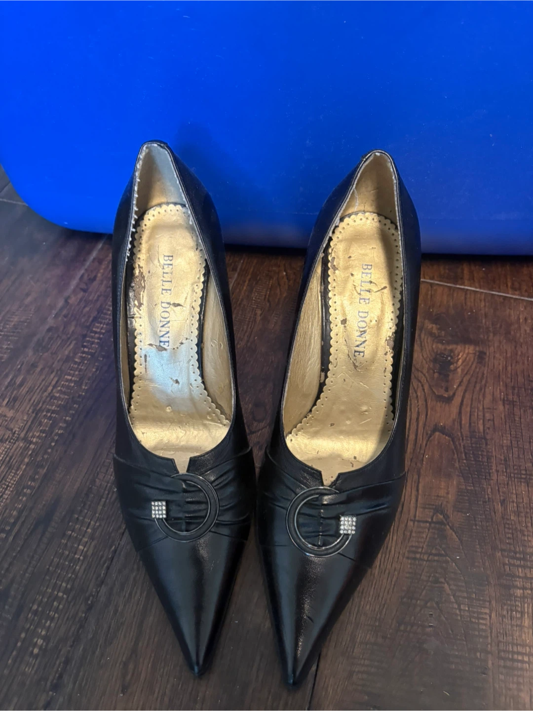 Selling a pair of Belle Donne black heels in size 9. They have a classic pointed toe and a stylish design. These heels are perfect for adding a touch of elegance to any outfit!