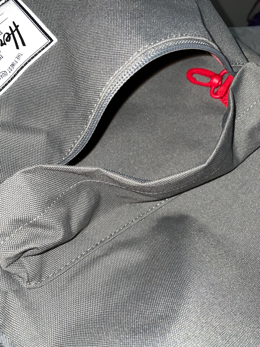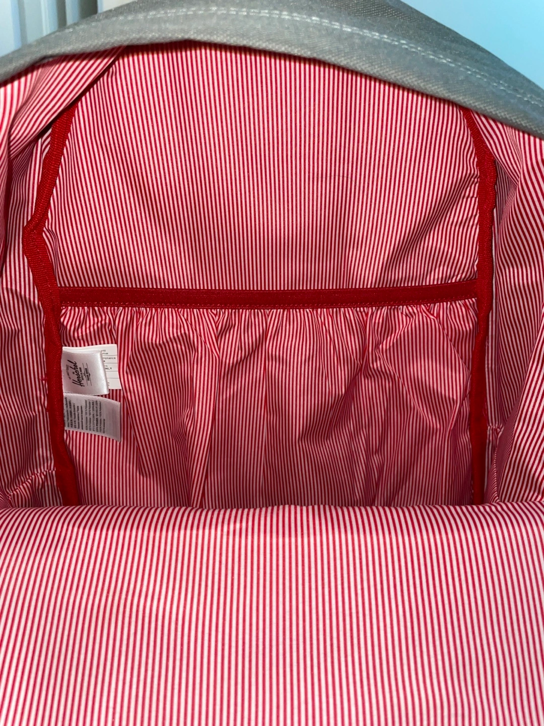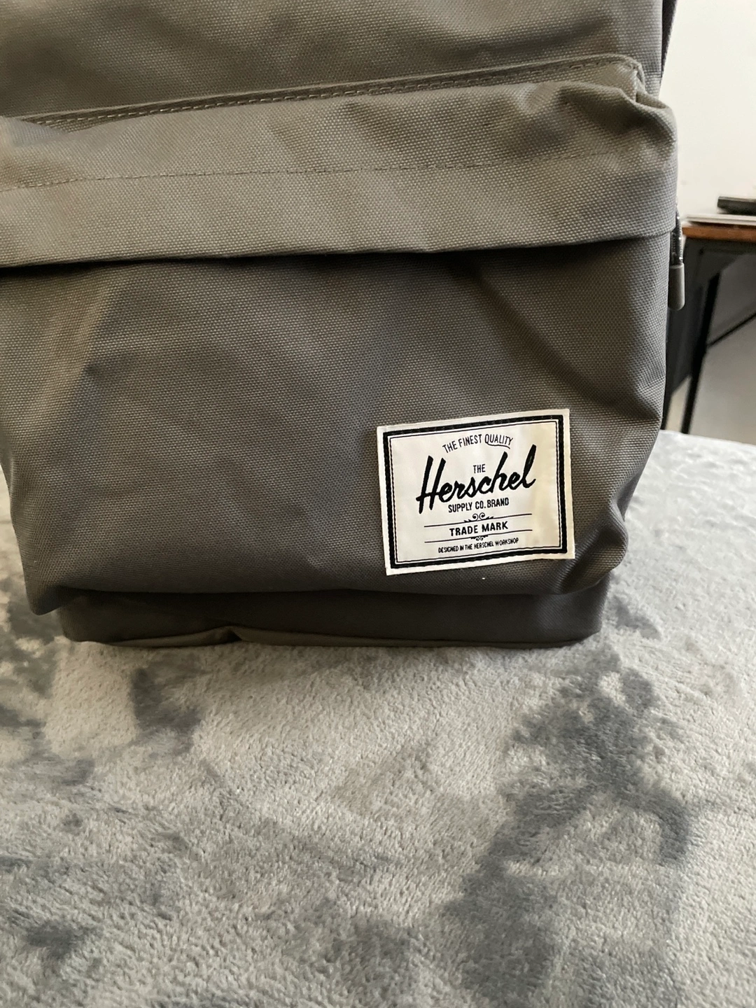 This is a Herschel Backpack in the color - Gargoyle - a medium toned grey. It has a padded laptop pocket and a pocket on each side.