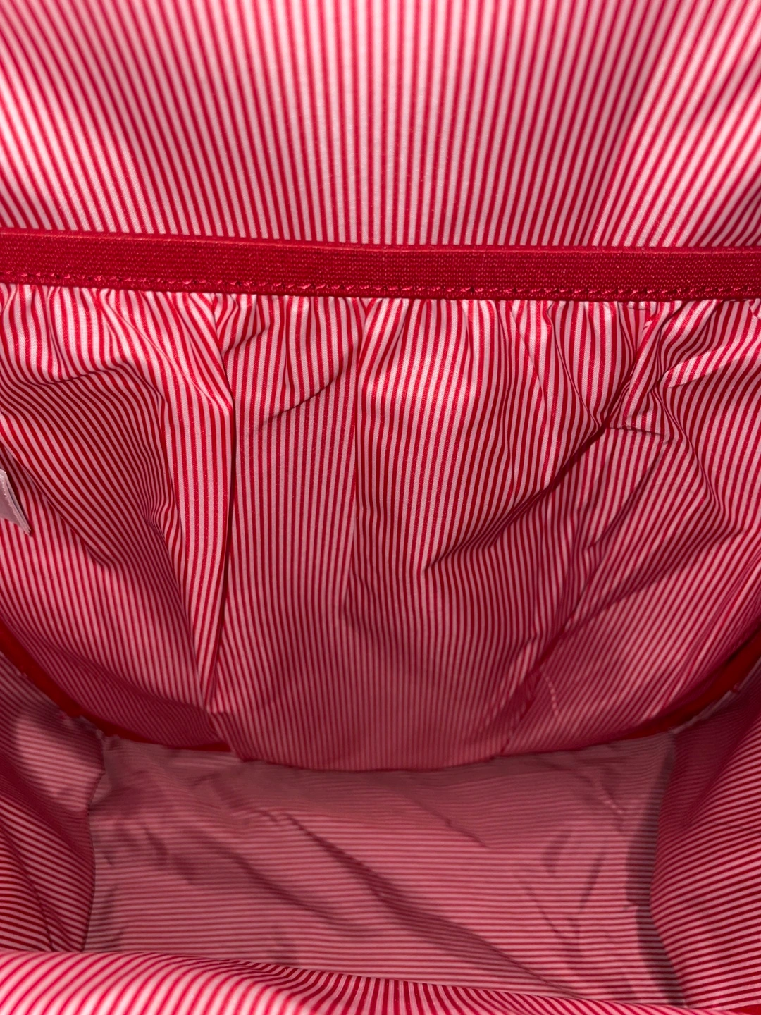 The main pocket on the front has a built in key holder.. red stripped interior and padded shoulder straps.