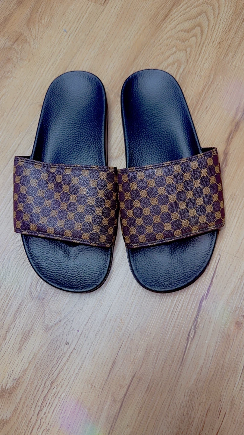 These are some stylish slides with a unique patterned strap. They appear to be in good condition and are ready for a new home! Perfect for casual wear around the house or a quick trip out.
