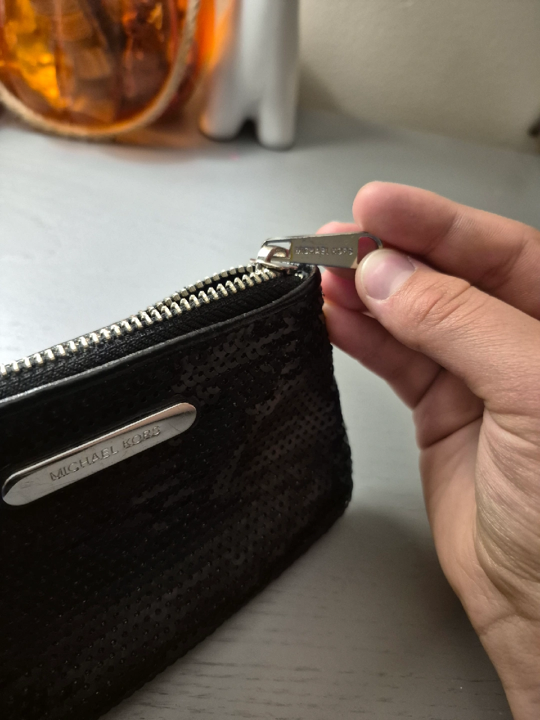 25Selling a cute Michael Kors pouch! It's black and covered in sequins, adding a bit of sparkle to your outfit. Perfect for carrying your essentials in style! BTAND NEW!