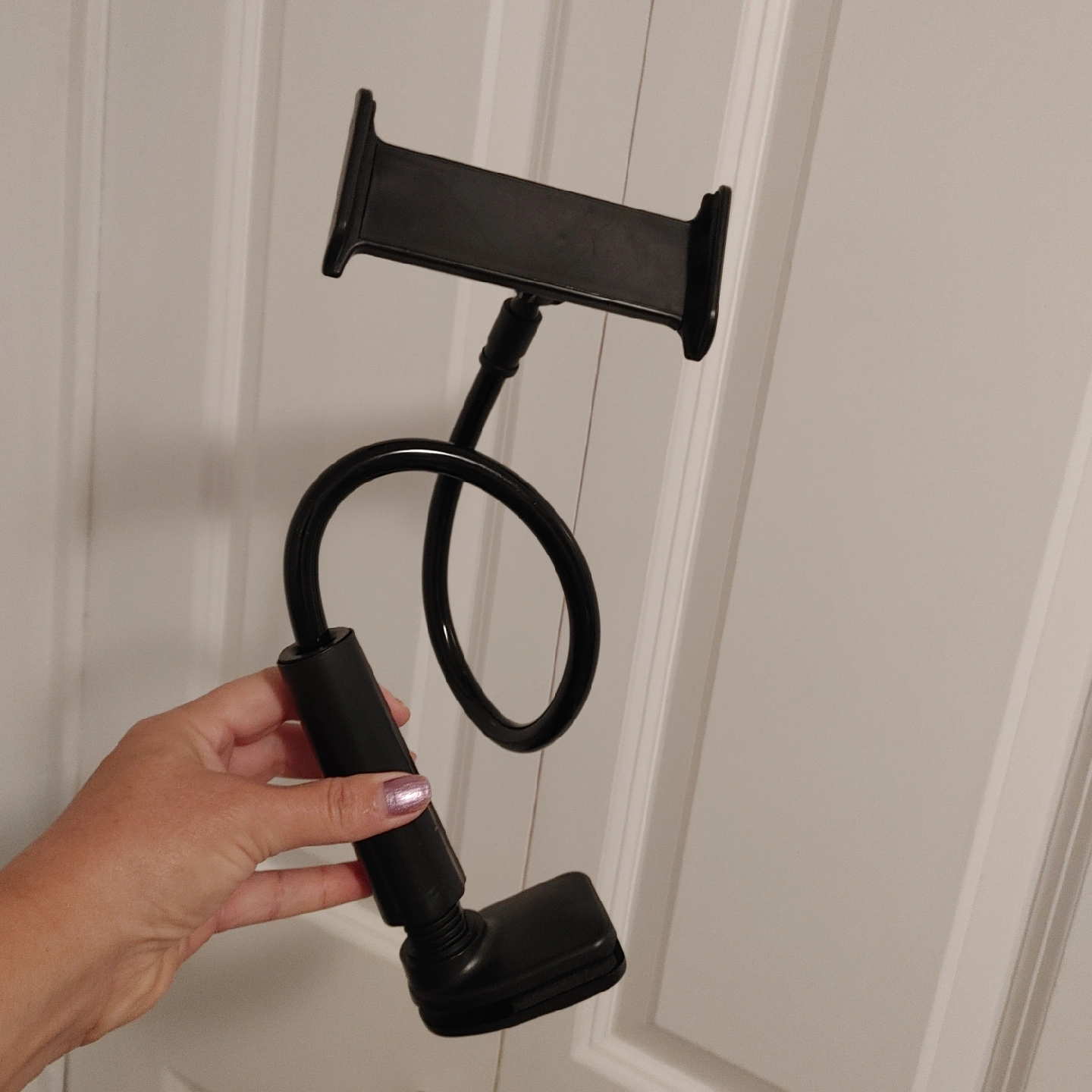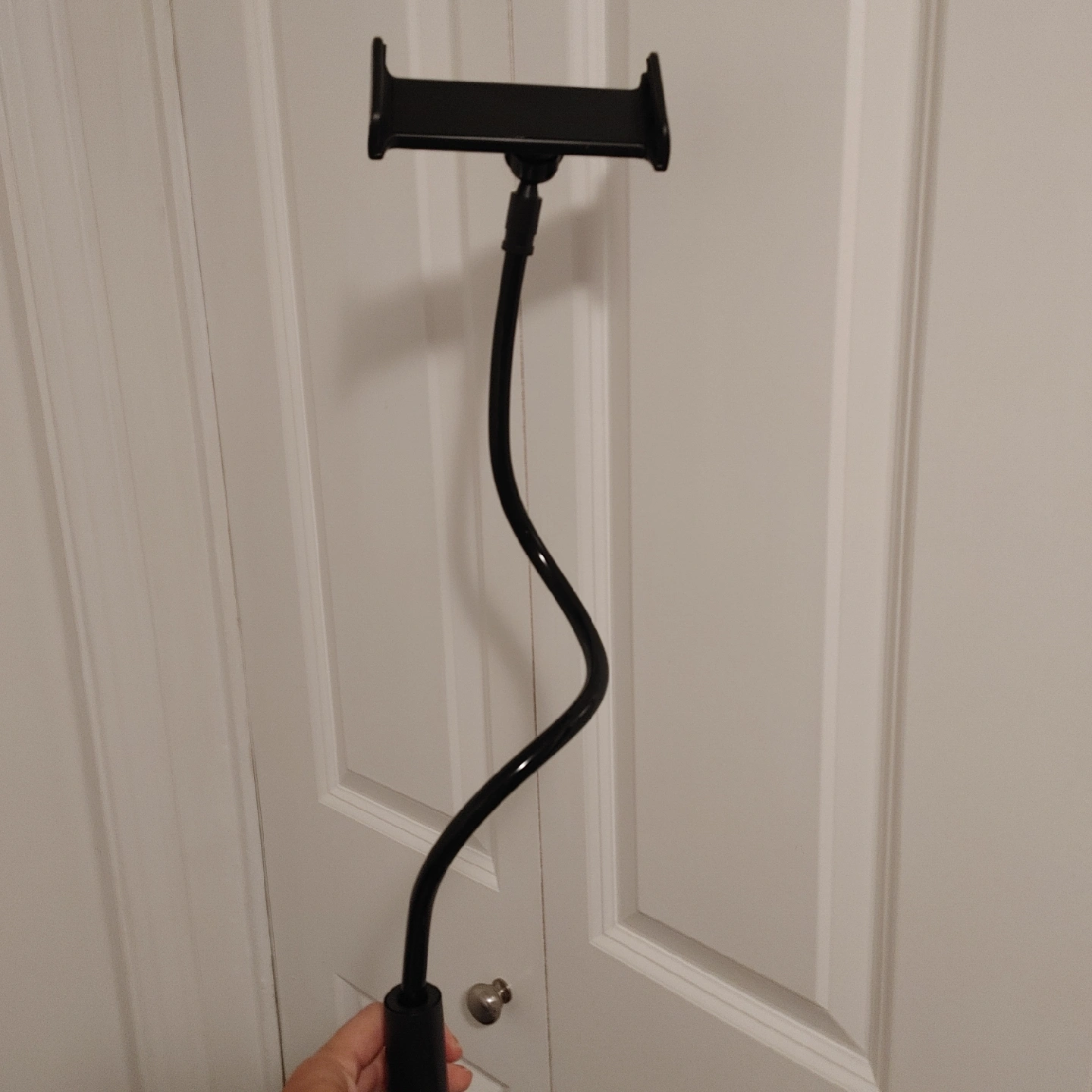This is a handy gooseneck holder for your tablet or phone! It's in great shape and ready to use. The flexible neck makes it easy to adjust to the perfect viewing angle. Great for watching videos or reading in bed!