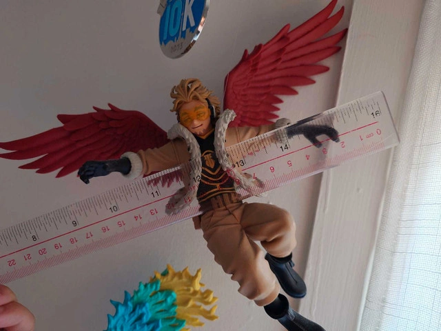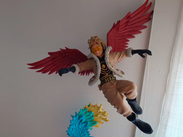 I'm offering an authentic Hawks auction figure from My Hero Academia. This detailed figure captures Hawks in a dynamic pose, showcasing his impressive wings and outfit. It's a great piece for any collector or fan of the series. This is a used figure in good condition. Here are some of the figure's features: * Detailed design * Dynamic pose * Authentic merchandise If the ad is up, it's available.