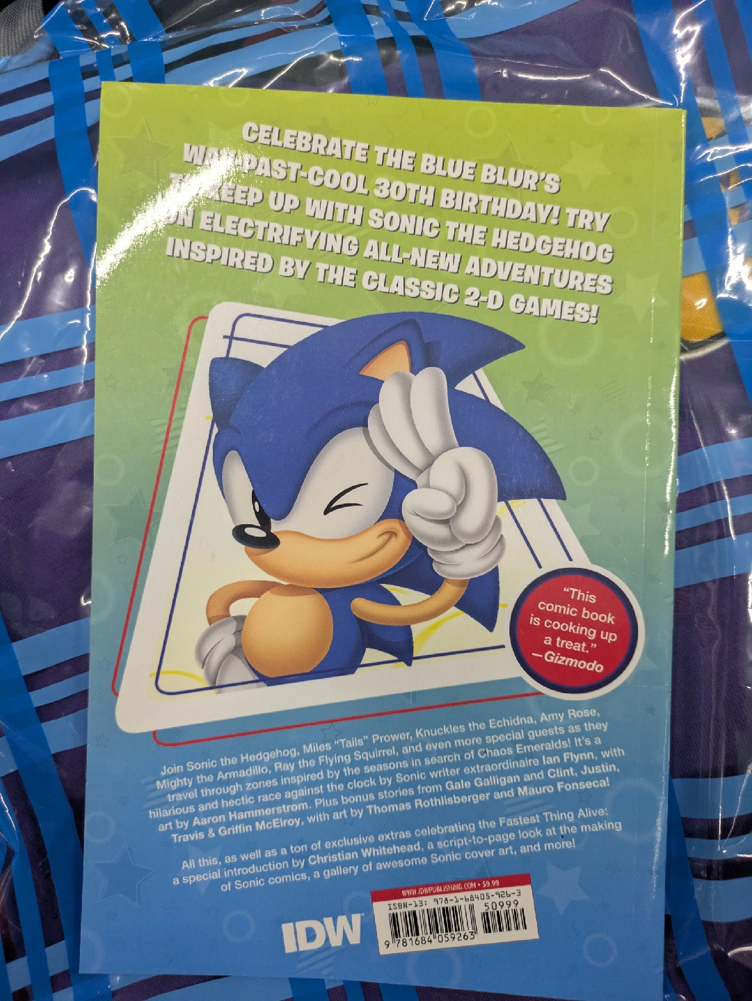 Selling a Sonic the Hedgehog 30th Anniversary Celebration comic book! It's a fun comic with stories by Ian Flynn, Gale Galligan, and more. The book also includes extra content about the making of Sonic comics